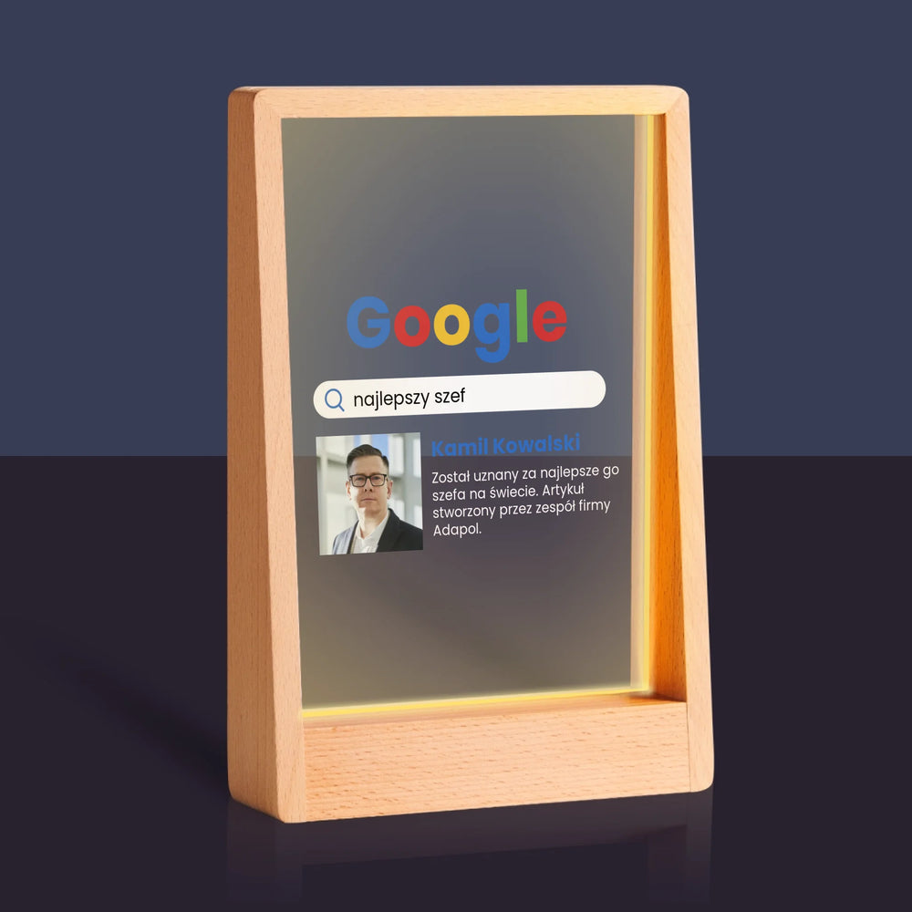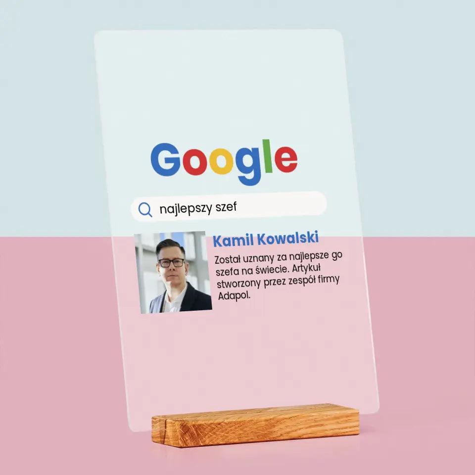 Zdjęcie i Podpis: Najlepszy Szef Wynik Google - Wydruk na szkle akrylowym