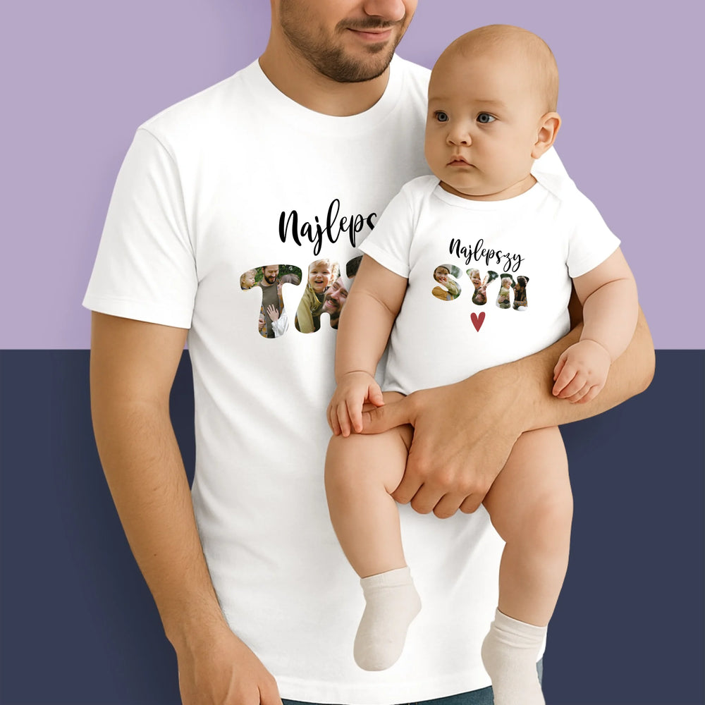 Koszulka męską oraz body dla dziecka z wybraną przez Ciebie personalizacją.