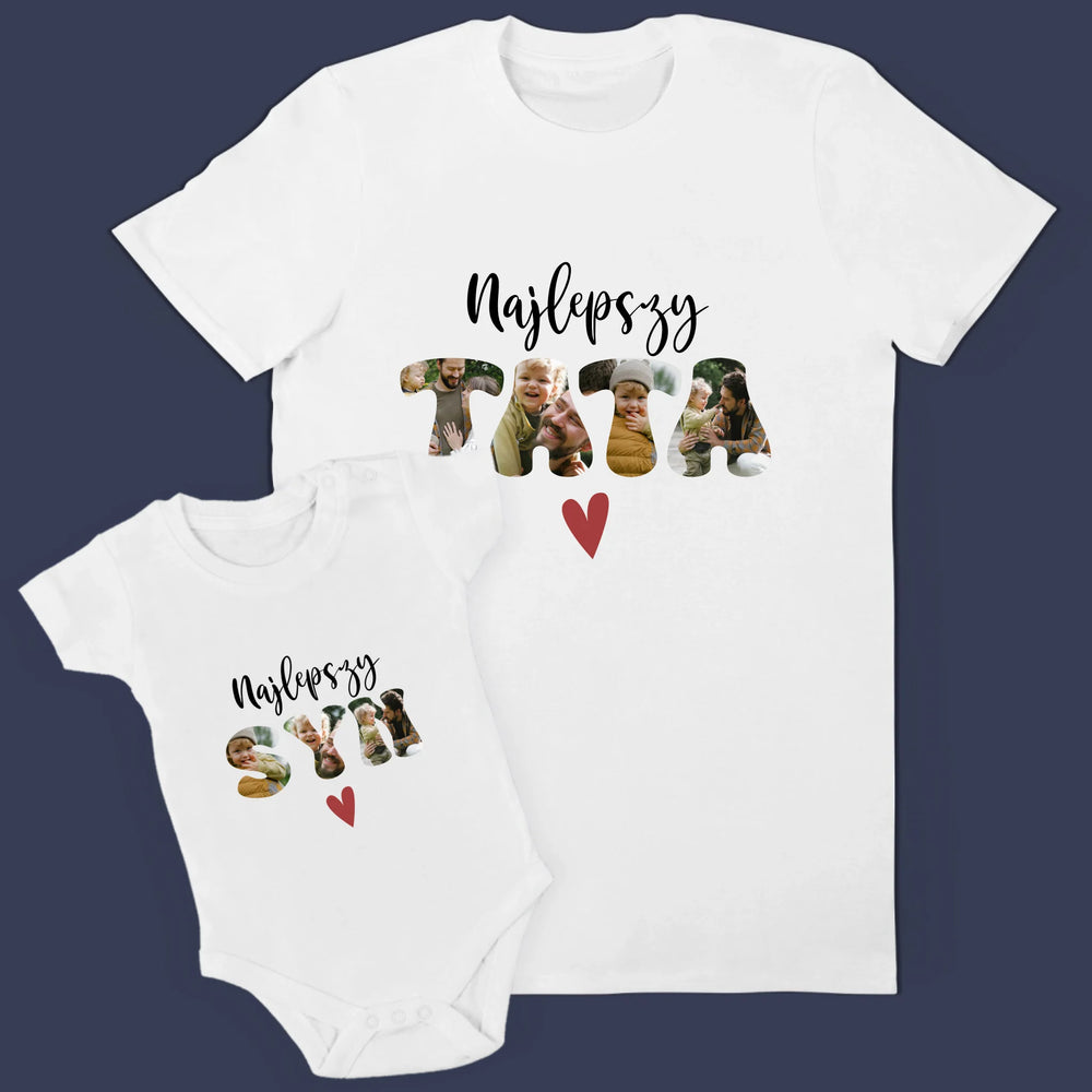Zdjęcie i Podpis: Najlepszy tata i syn serce - Zestaw koszulka męska + body