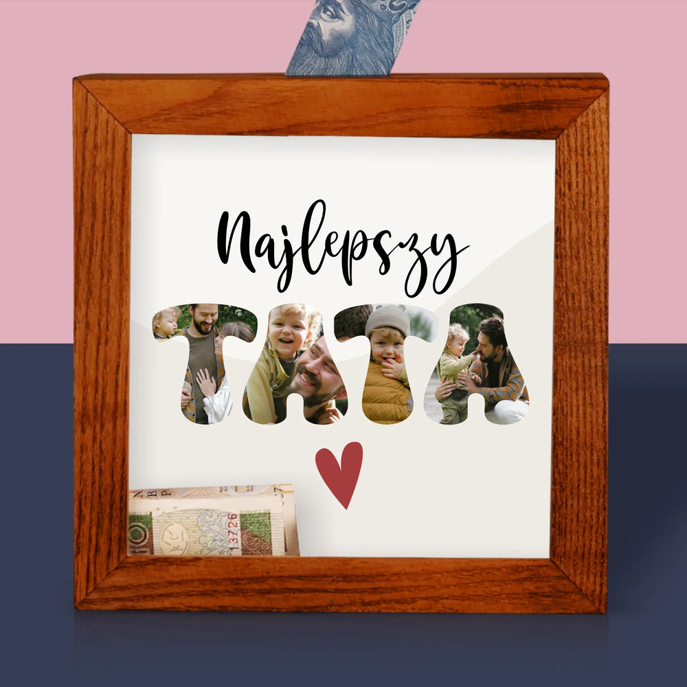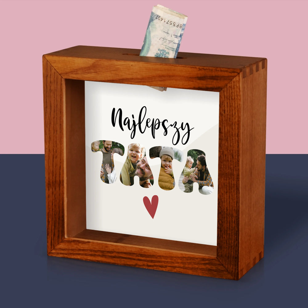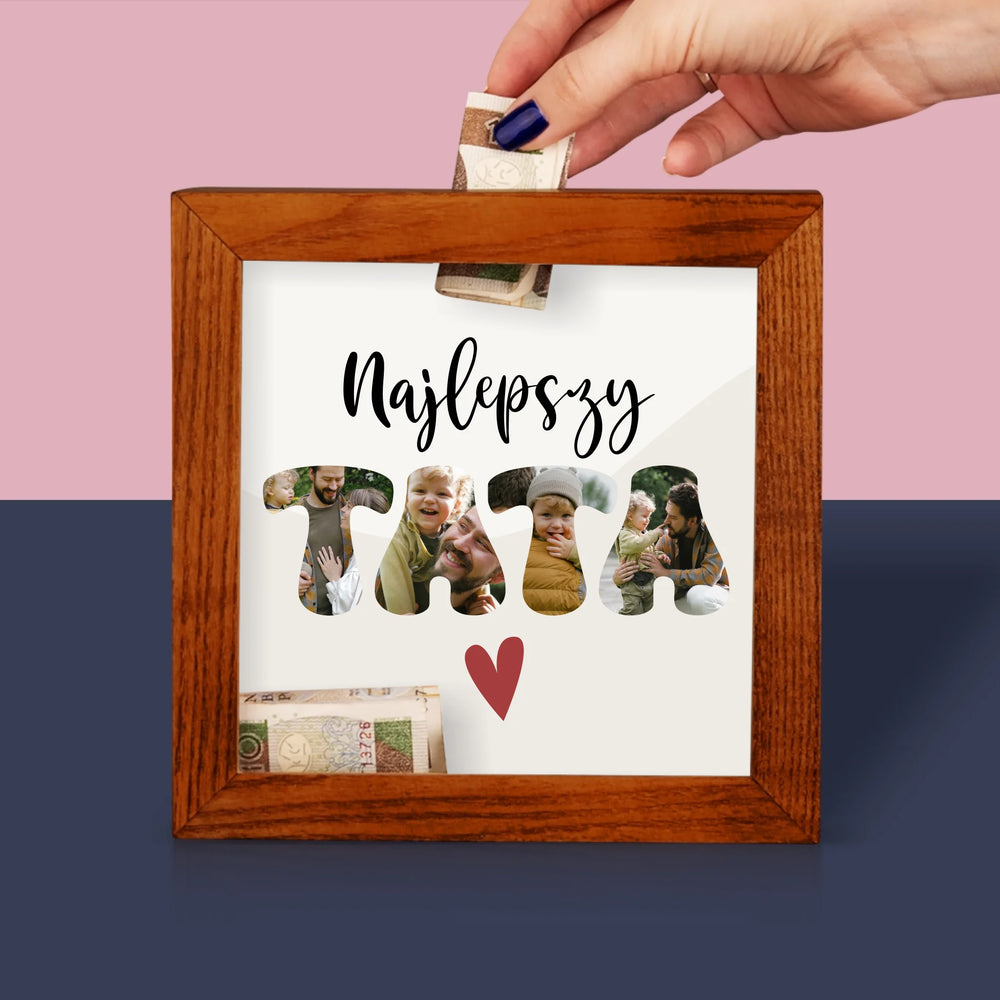 Zdjęcie I Podpis: Najlepszy Tata Serce - Drewniana skarbonka