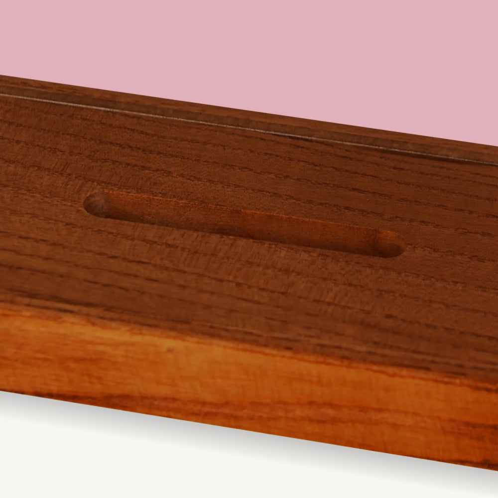 Wykonana z bejcowanego i lakierowanego drewna jesionowego.