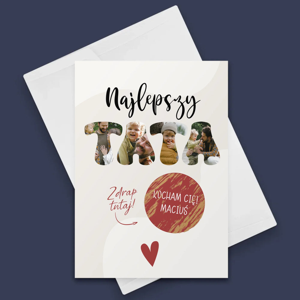 Zdjęcie I Podpis: Najlepszy Tata Serce - Kartka zdrapka