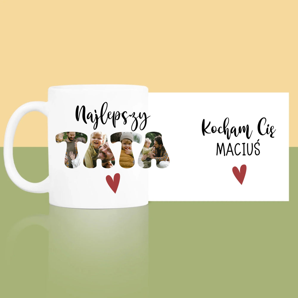 Zdjęcie I Podpis: Najlepszy Tata Serce - Kubek z nadrukiem