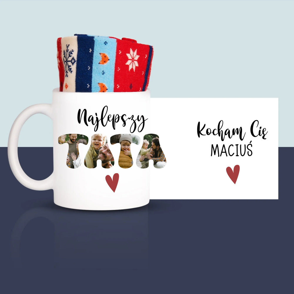 Zdjęcie i Podpis: Najlepszy Tata Serce - Zimowe Skarpetki w Kubku