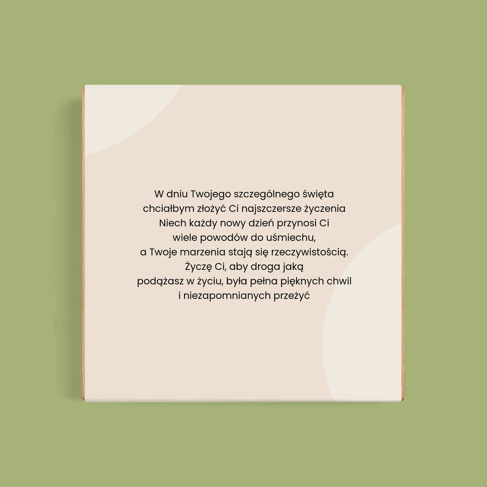 Efektowny nadruk z personalizacją znajduje się na specjalnej obwolucie prezentowej.