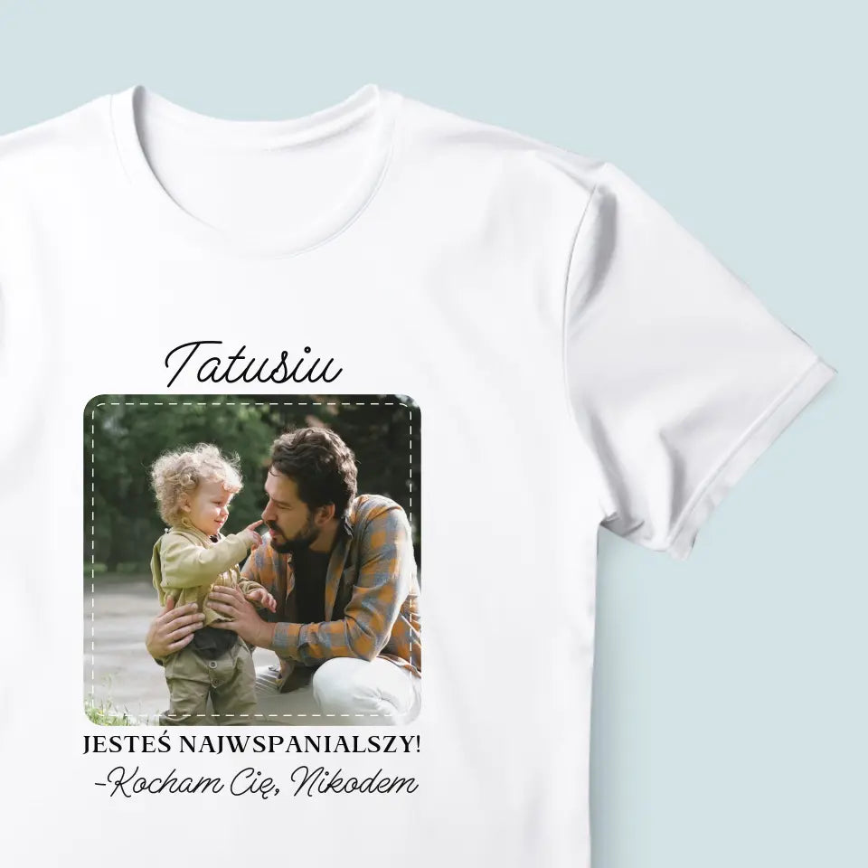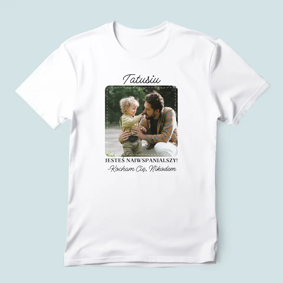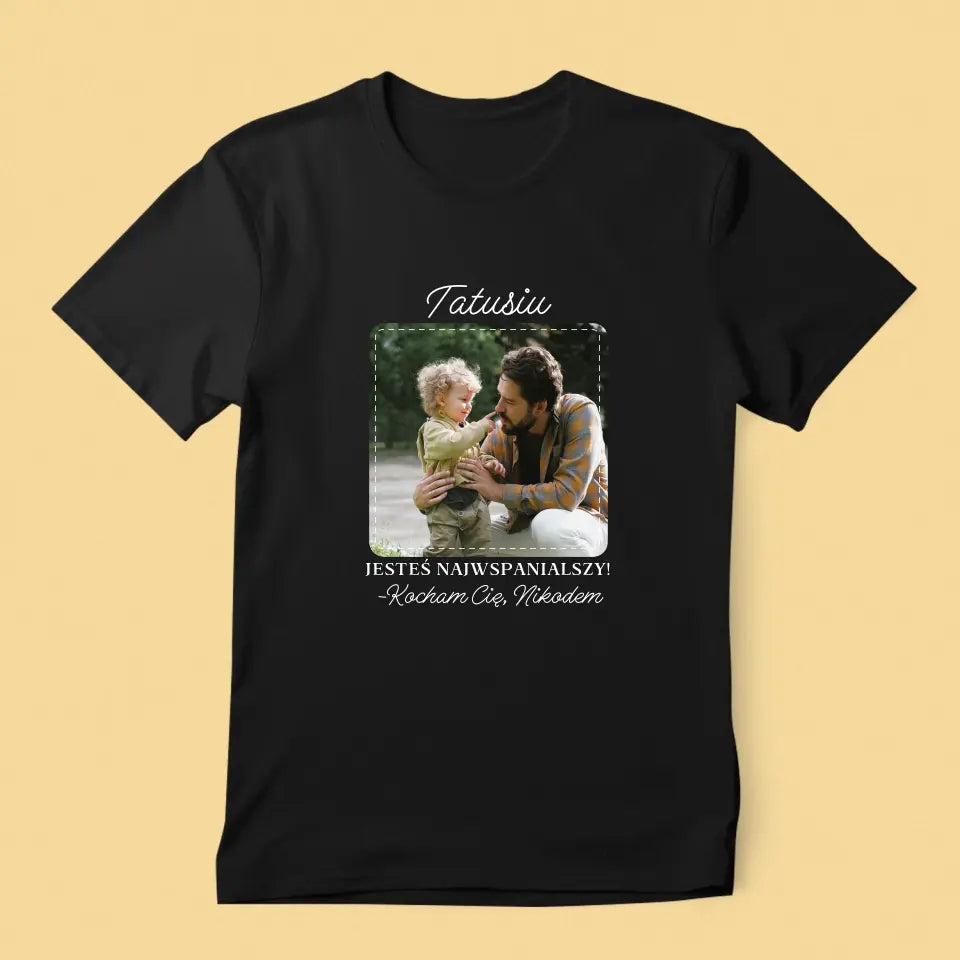 Zdjęcie i Podpis: Najwspanialszy Tata - Personalizowana Koszulka Męska