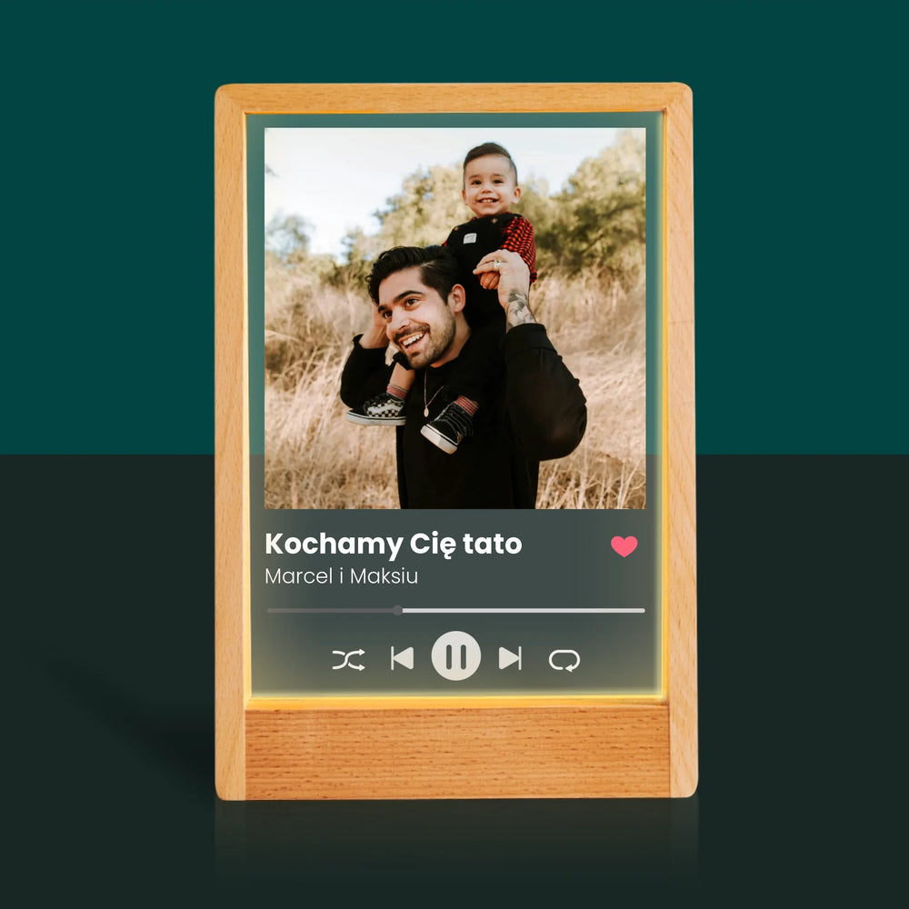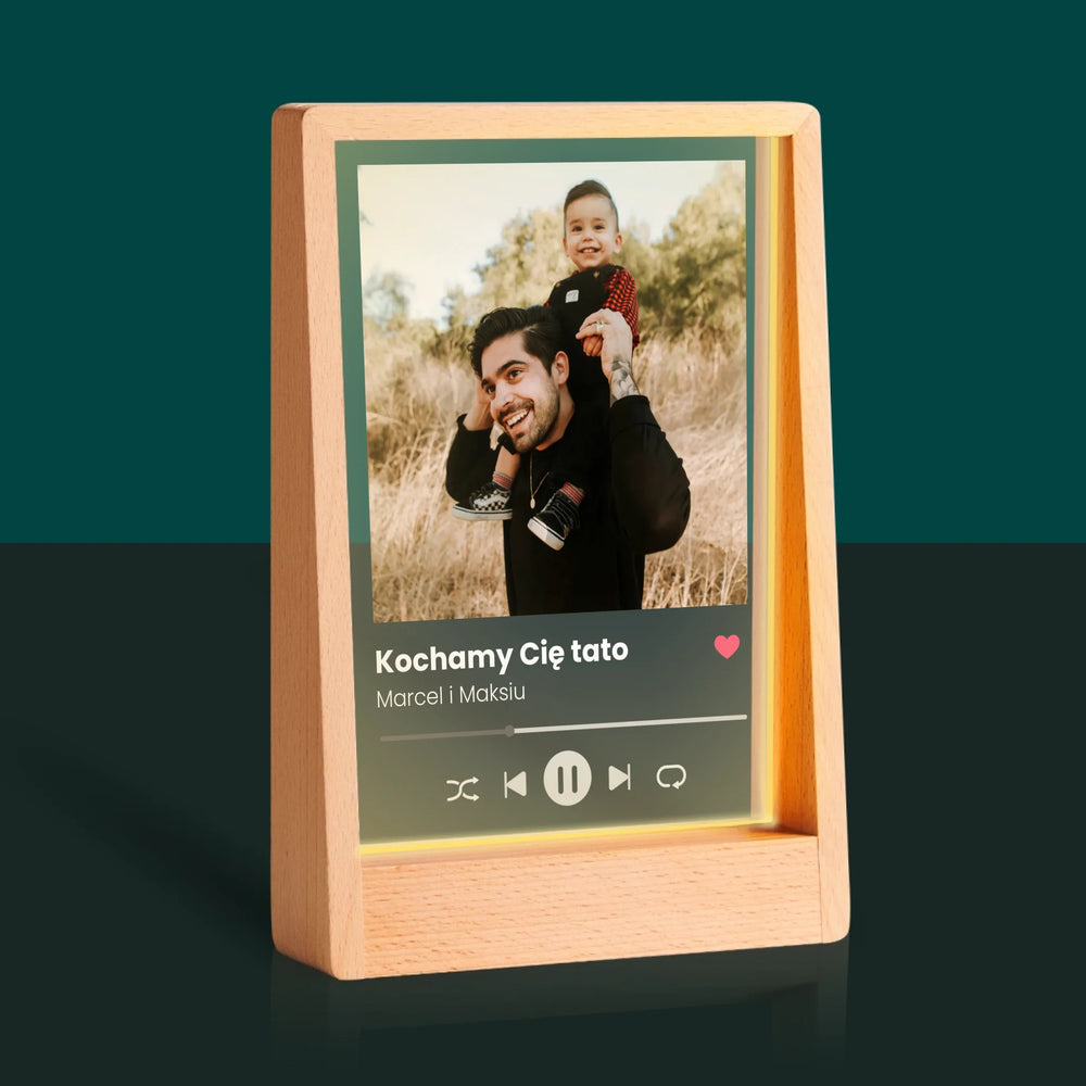 Zdjęcie i Podpis: Najwspanialszy Tata Na Świecie - Wydruk na szkle akrylowym w ramce LED
