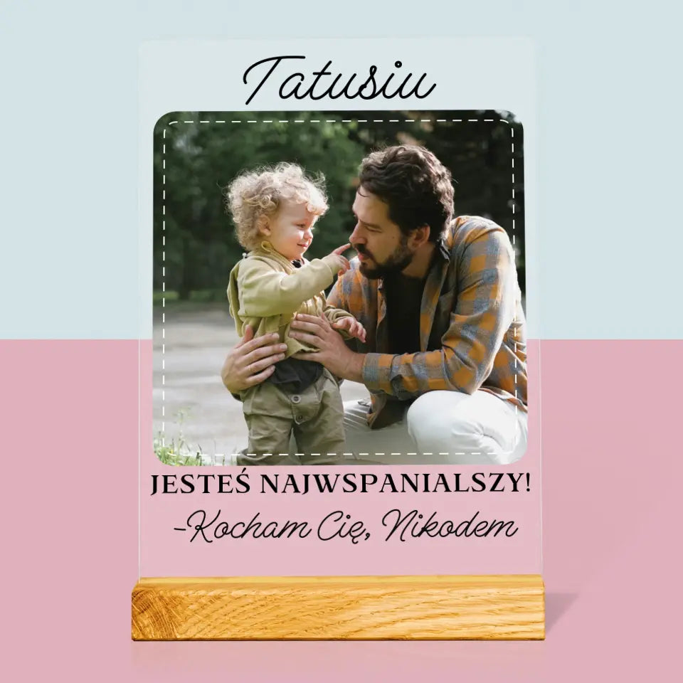 Zdjęcie i Podpis: Najwspanialszy Tata - Wydruk na szkle akrylowym