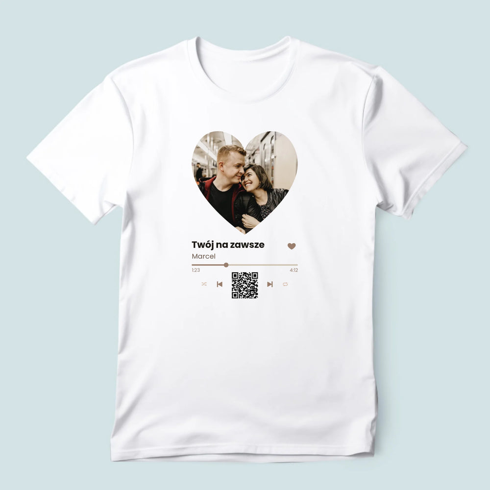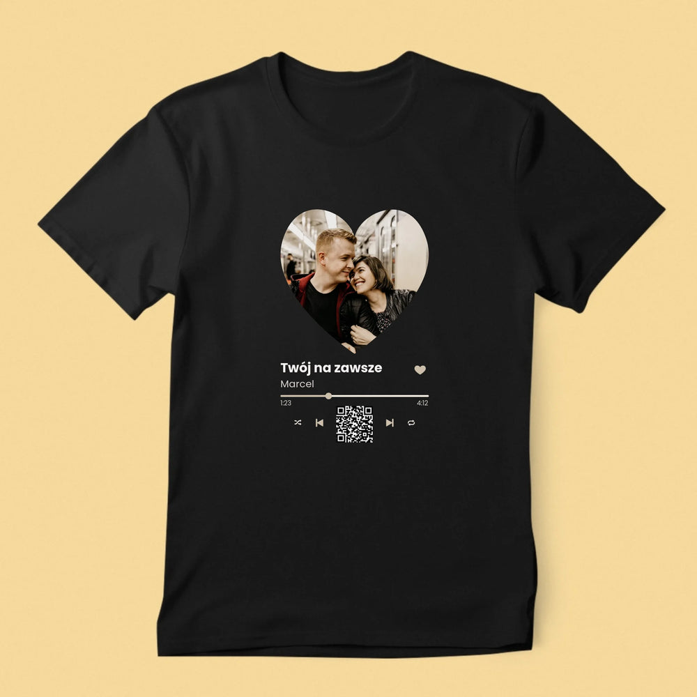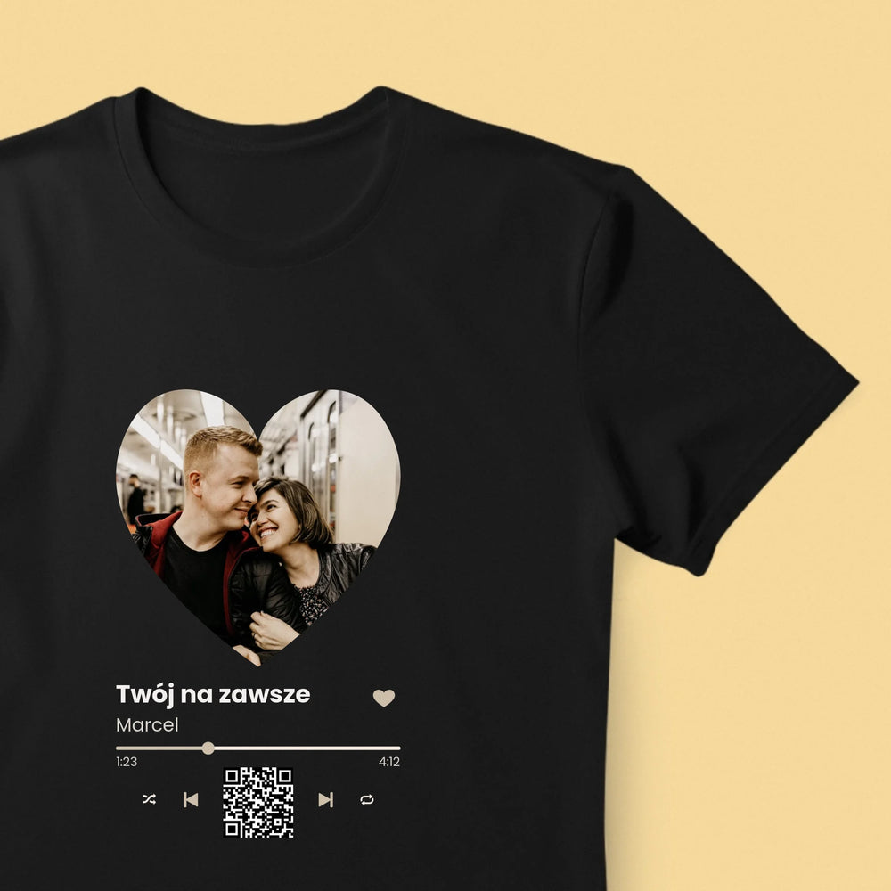 Zdjęcie i Podpis: Nasza Piosenka Serce Kod Qr - Personalizowana Koszulka Męska