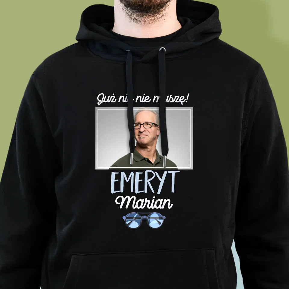 Zdjęcie i Podpis: Nic Nie Muszę! Emeryt - Bluza Męska z Kapturem