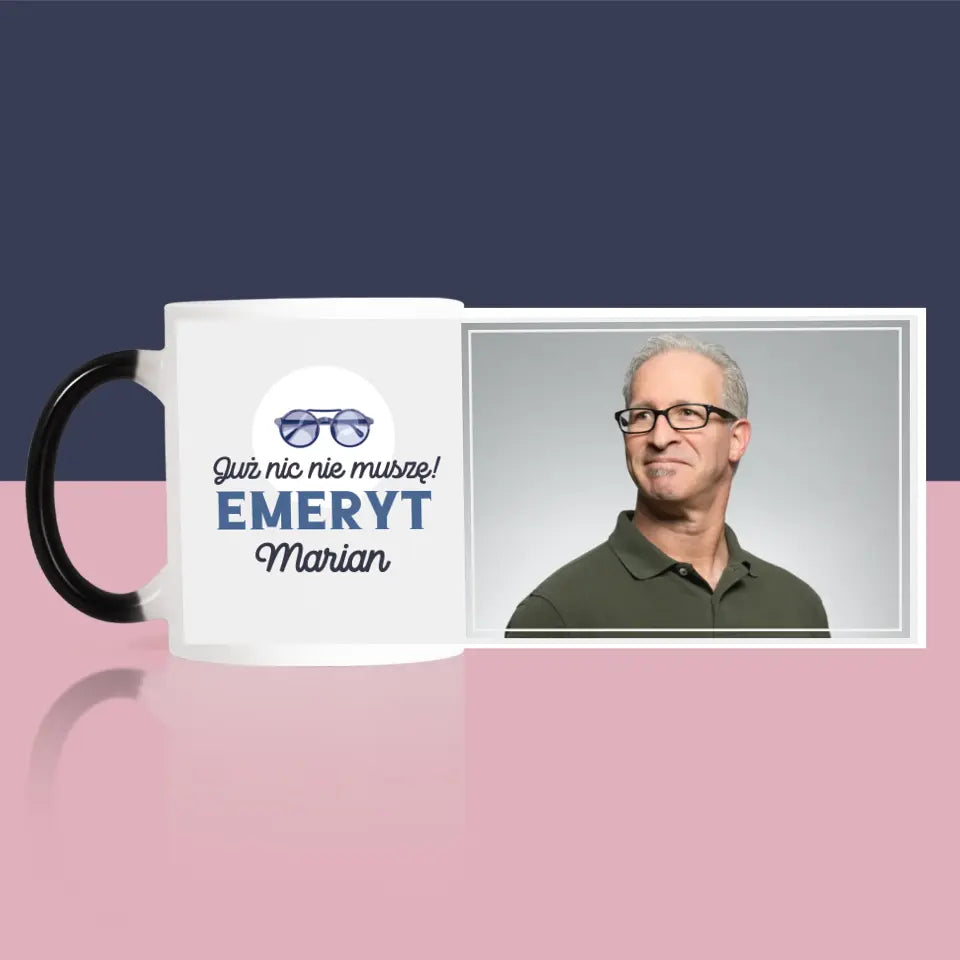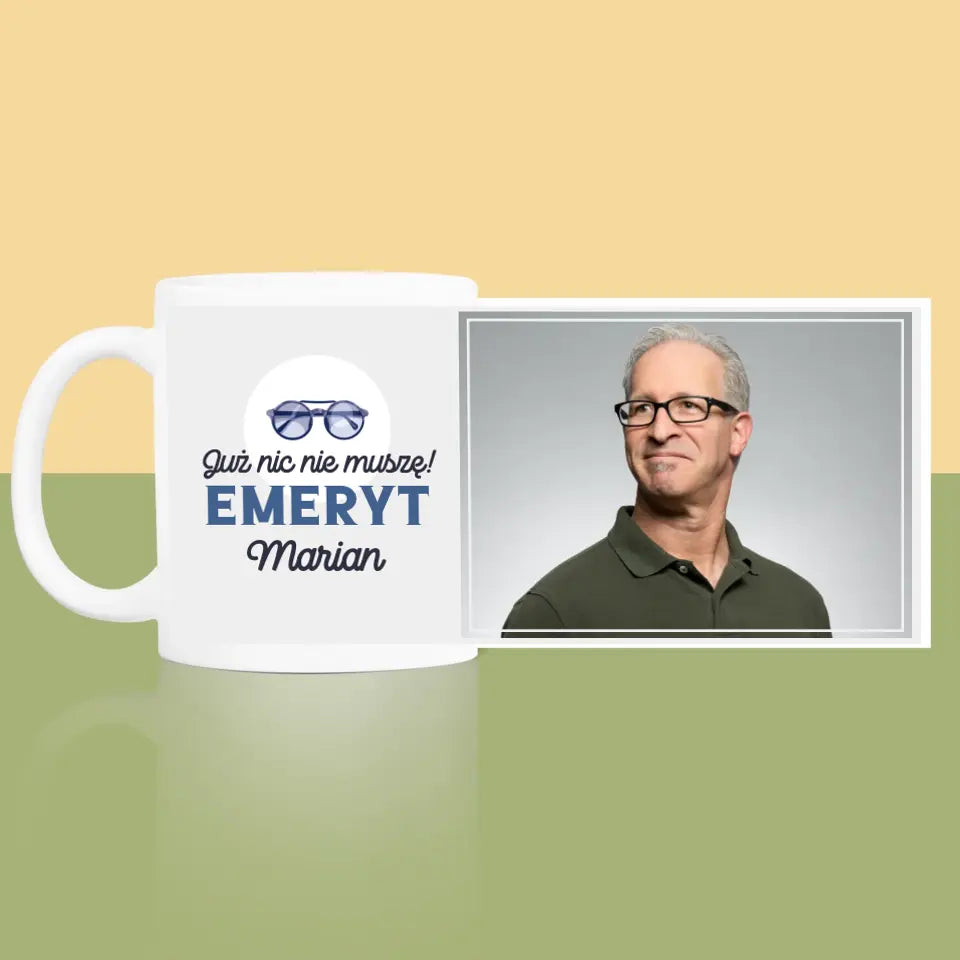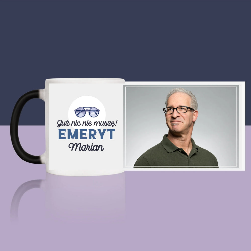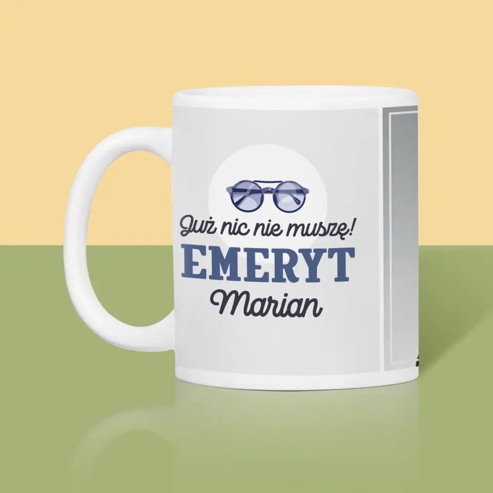 Zdjęcie i Podpis: Nic Nie Muszę! Emeryt - Kubek z nadrukiem