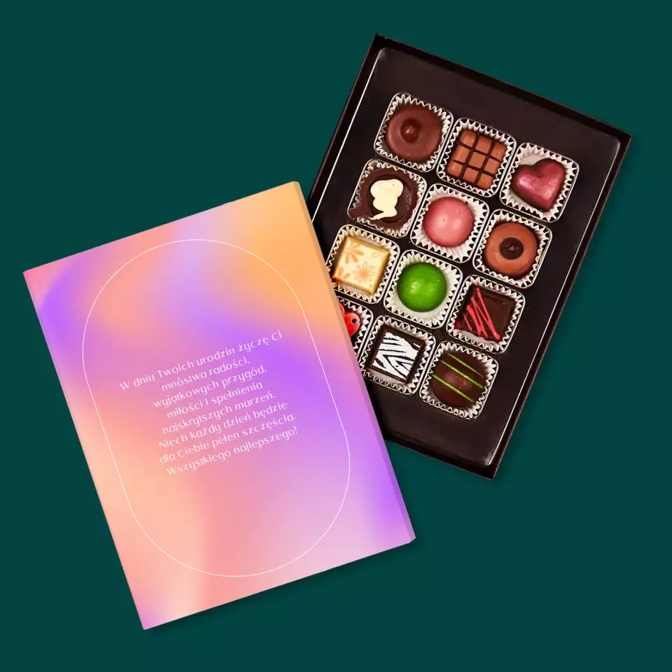 Pyszne praliny z belgijskiej czekolady w eleganckim pudełku z wybraną przez Ciebie personalizacją.