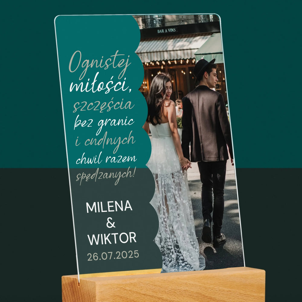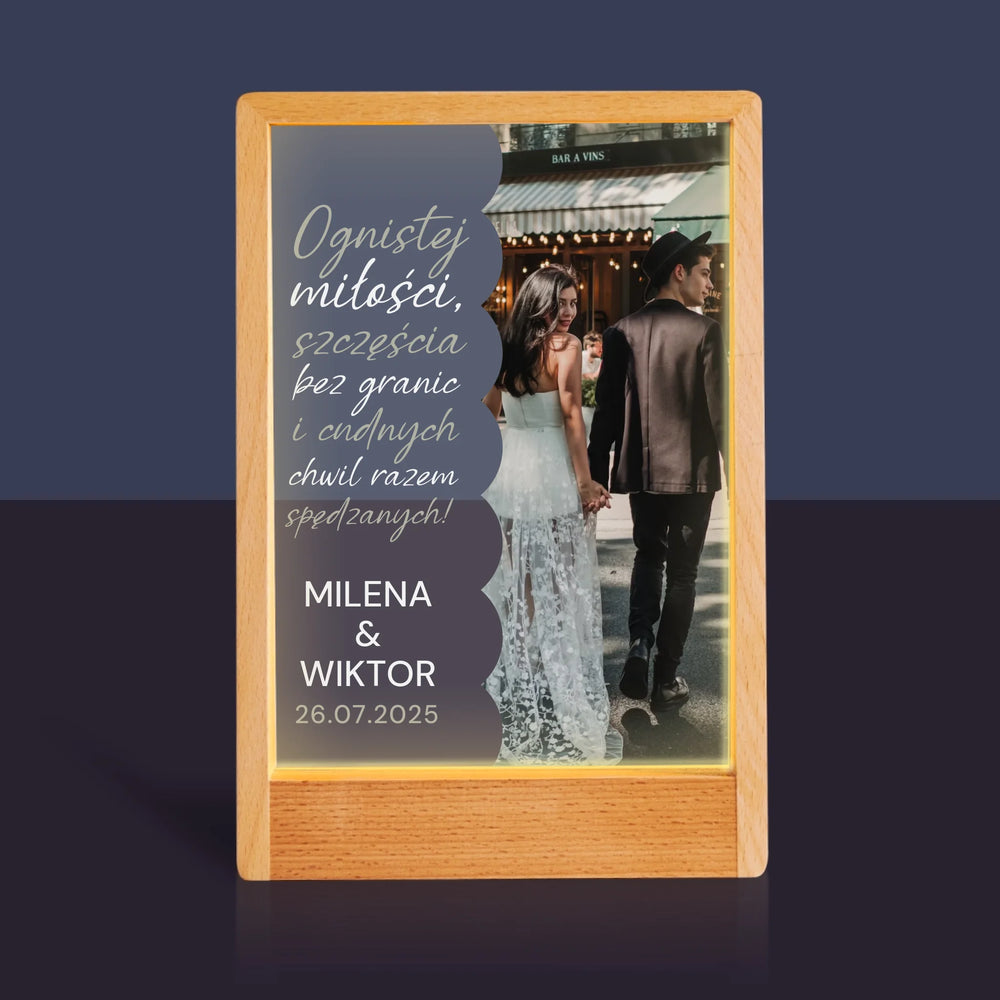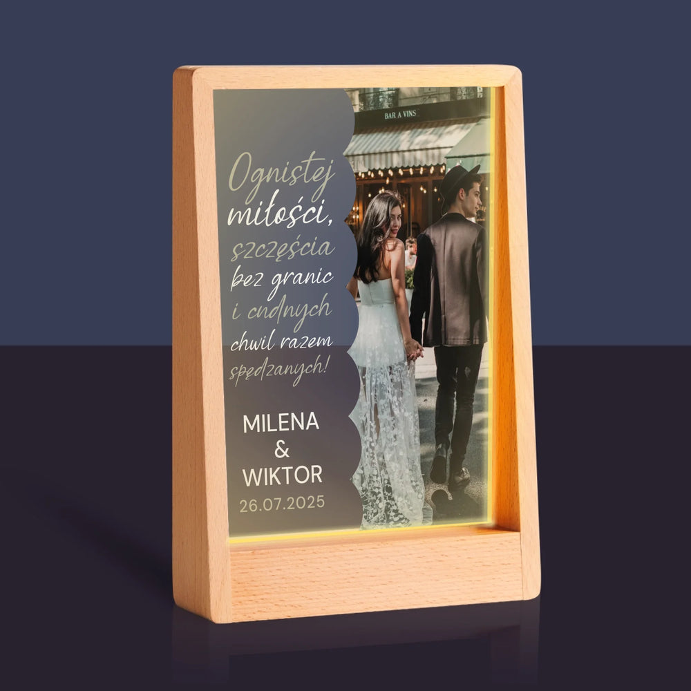 Zdjęcie i Podpis: Ognistej Miłości - Wydruk na szkle akrylowym w ramce LED
