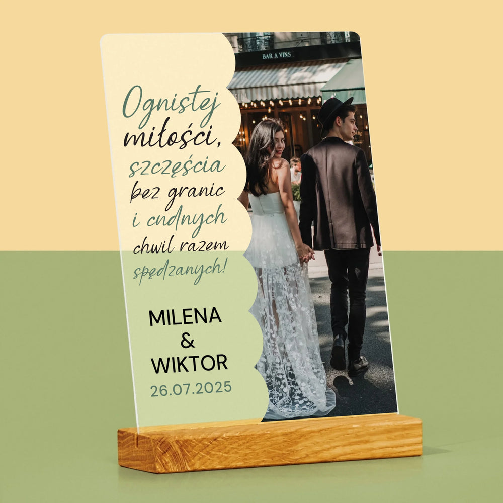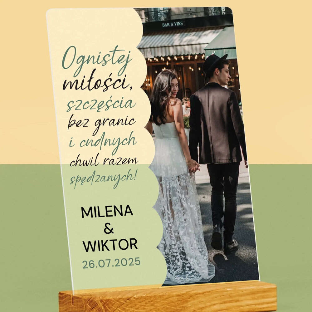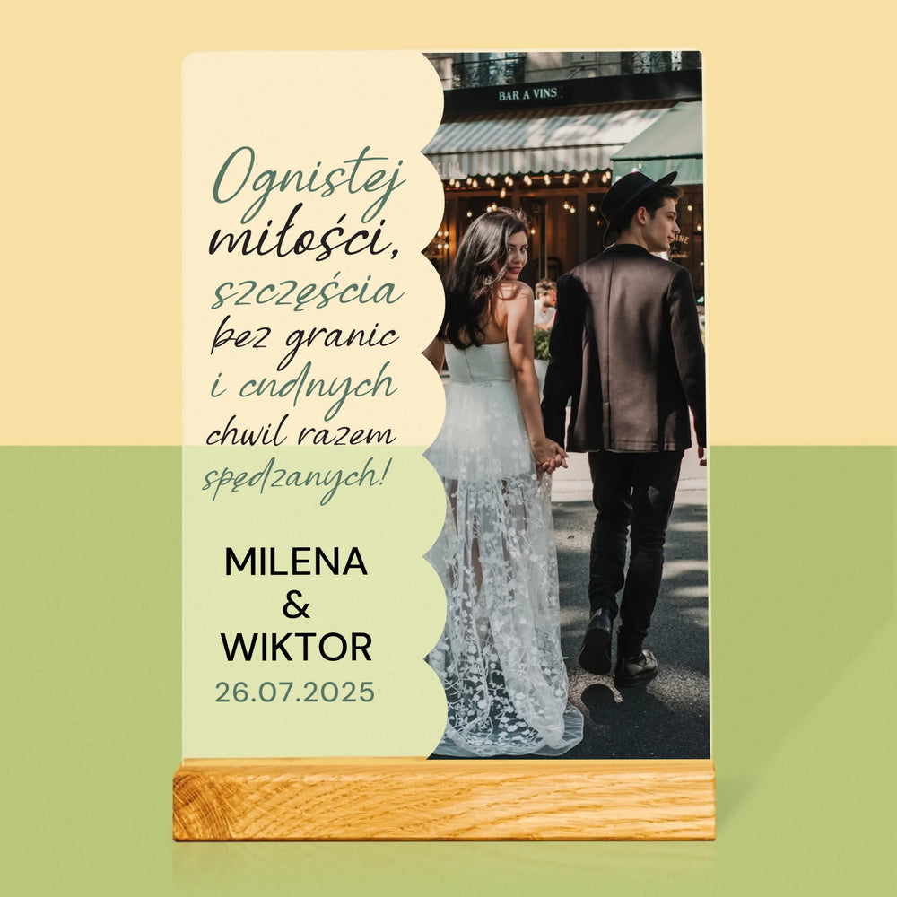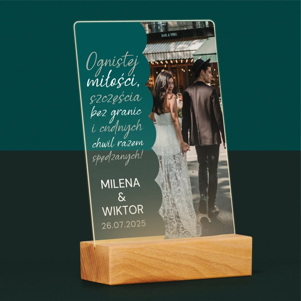 Zdjęcie i Podpis: Ognistej Miłości - Wydruk na szkle akrylowym w ramce LED