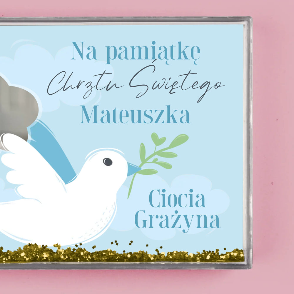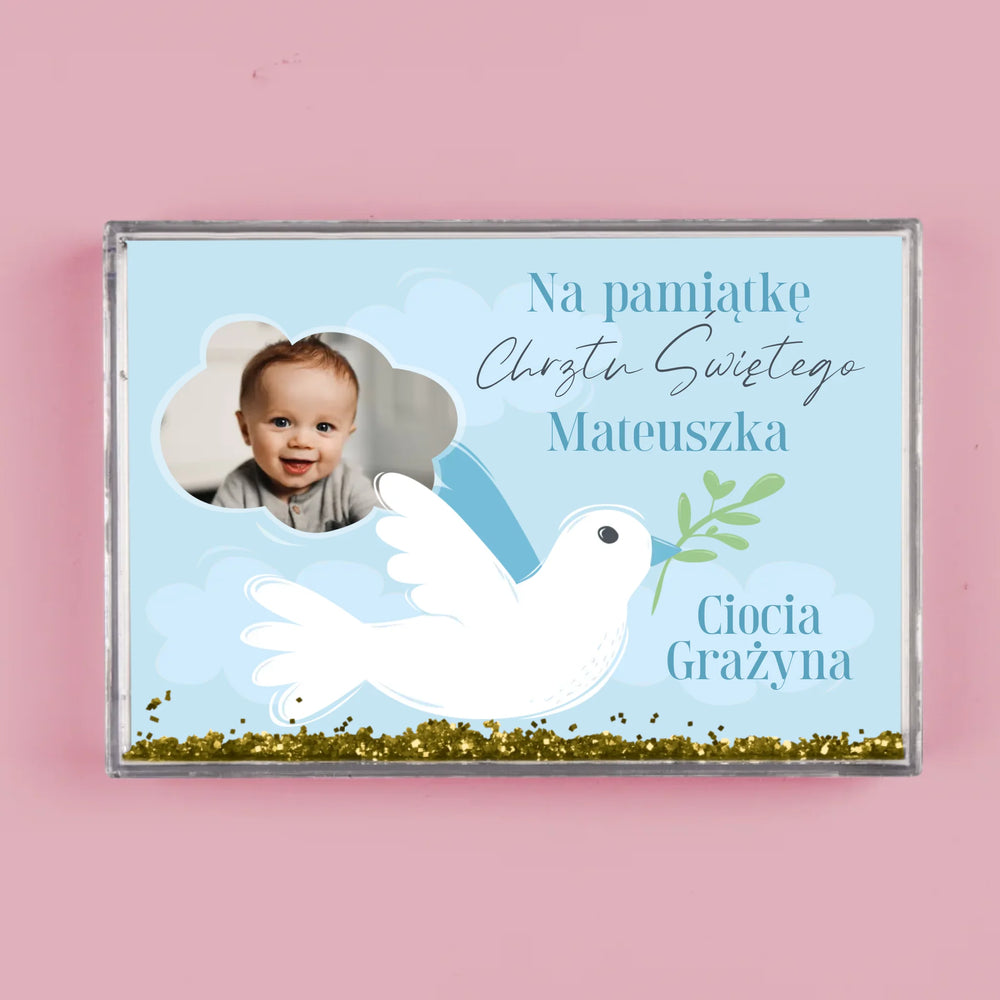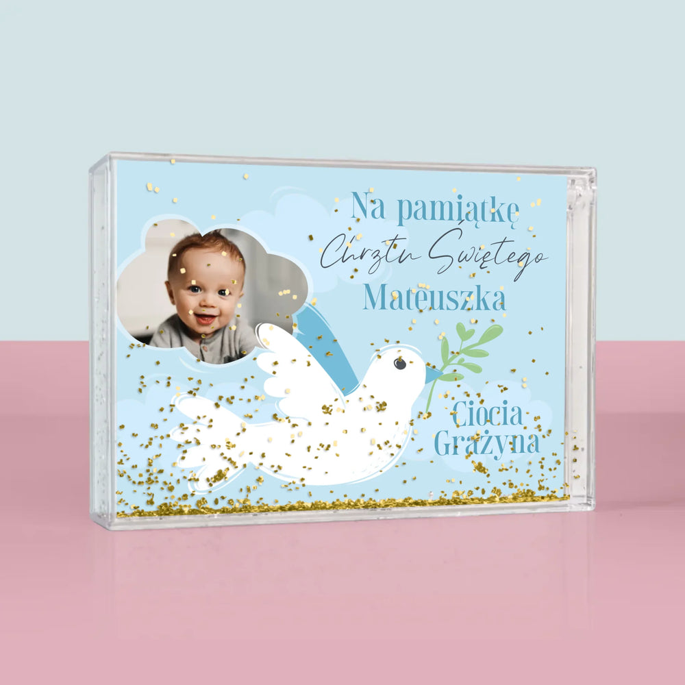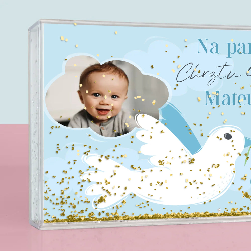 Zdjęcie i Podpis: Pamiątka Chrztu Gołąbek - Personalizowana Ramka Wodna