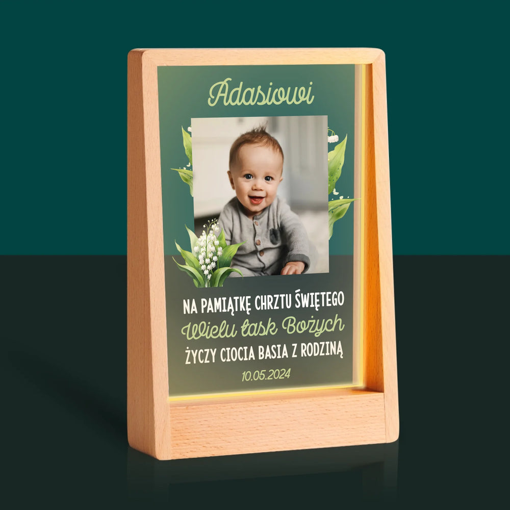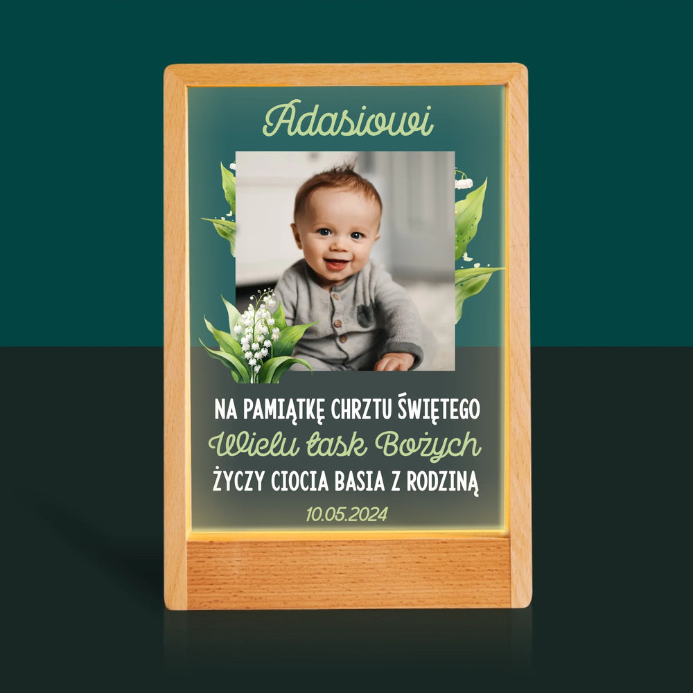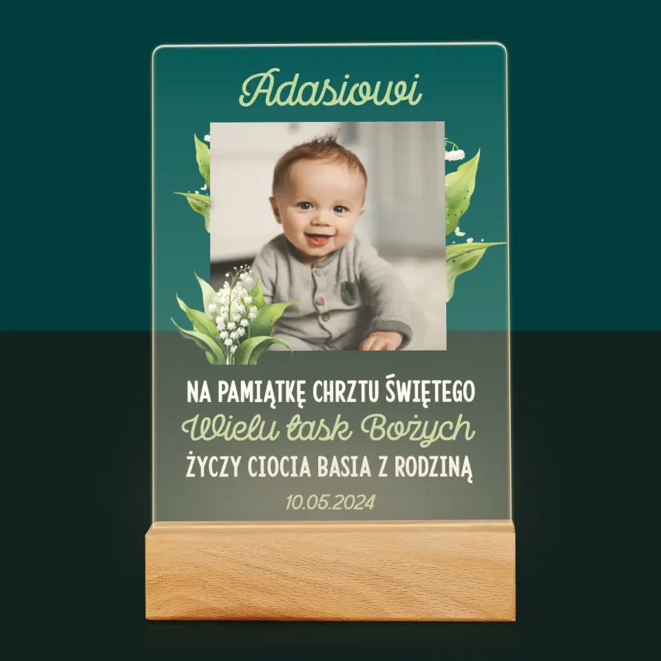 Zdjęcie i Podpis: Pamiątka Chrztu Konwalie - Wydruk na szkle akrylowym