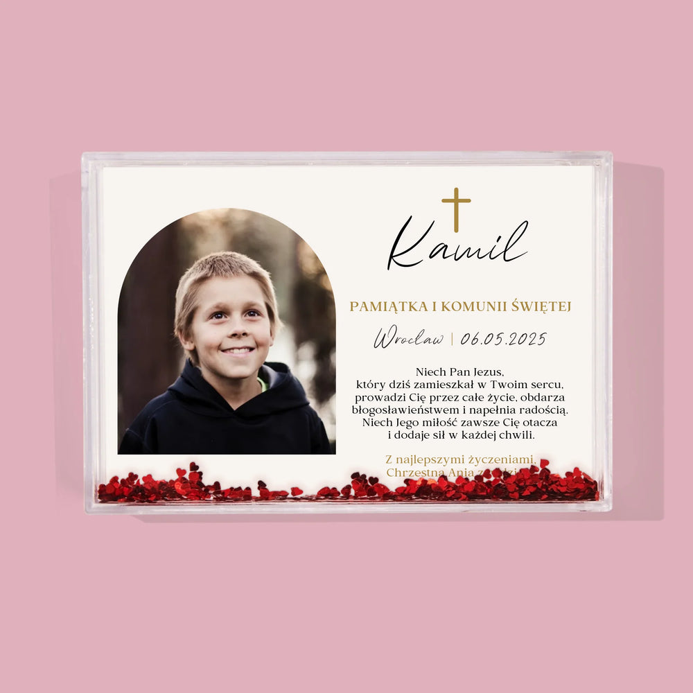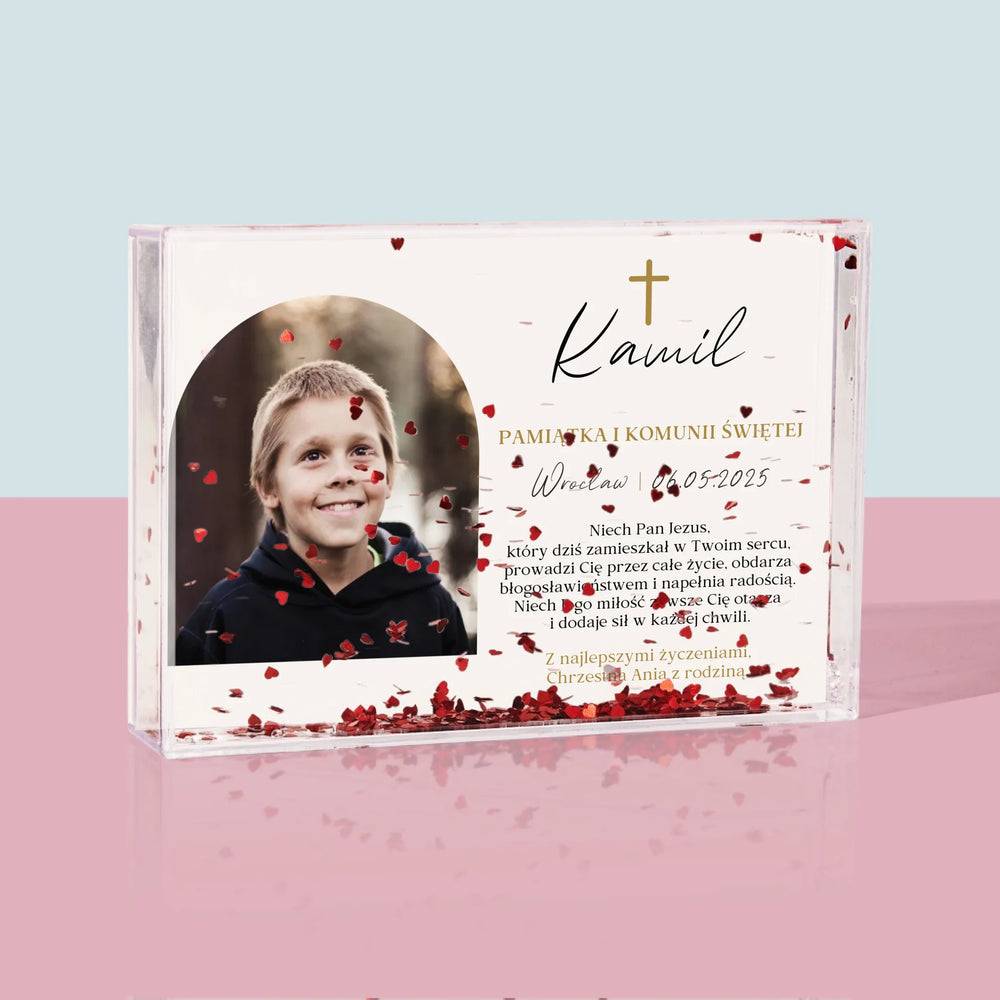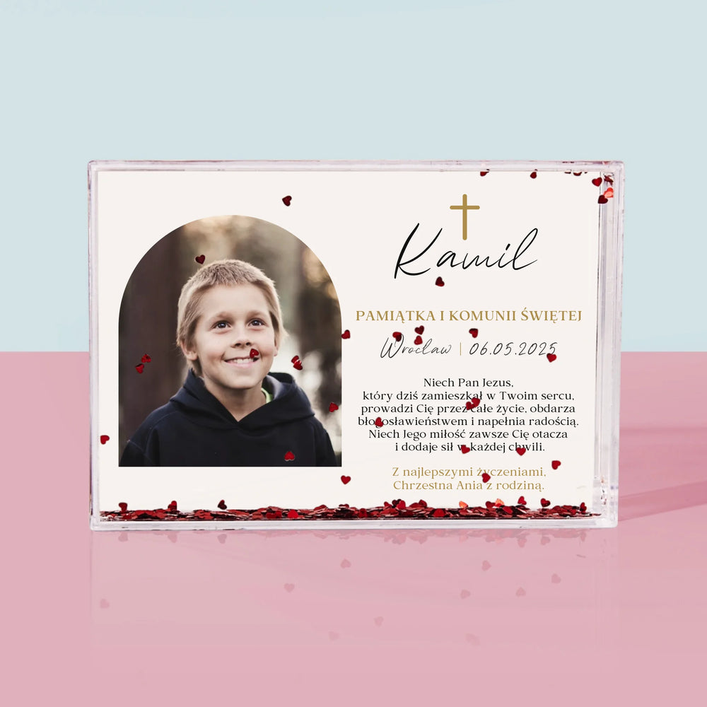 Zdjęcie i Podpis: Pamiątka Komunii Klasyczna - Personalizowana Ramka Wodna