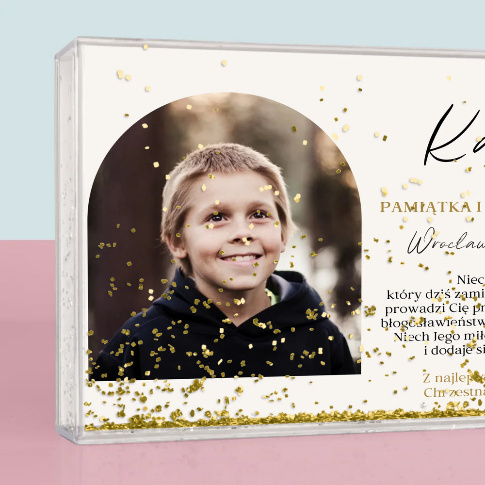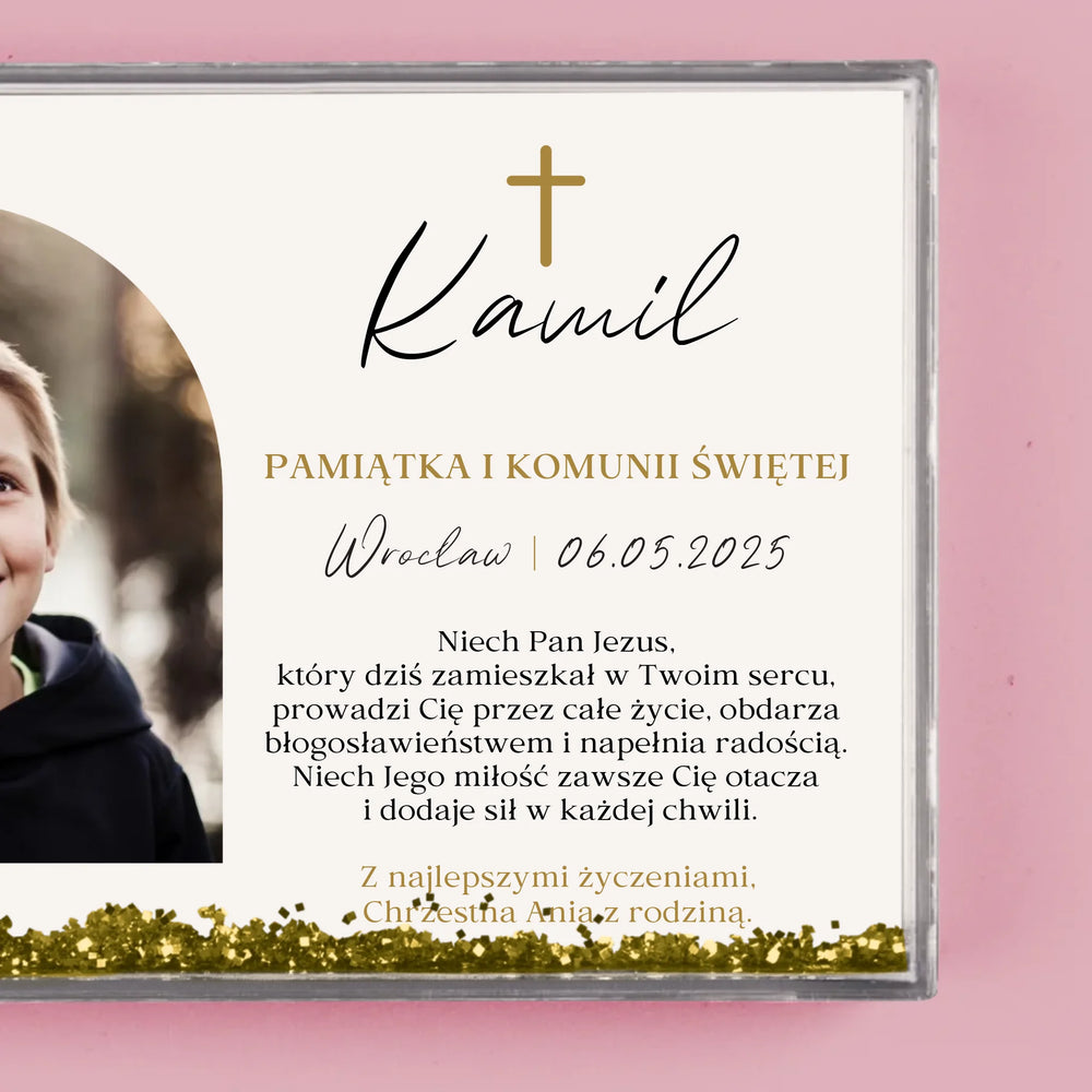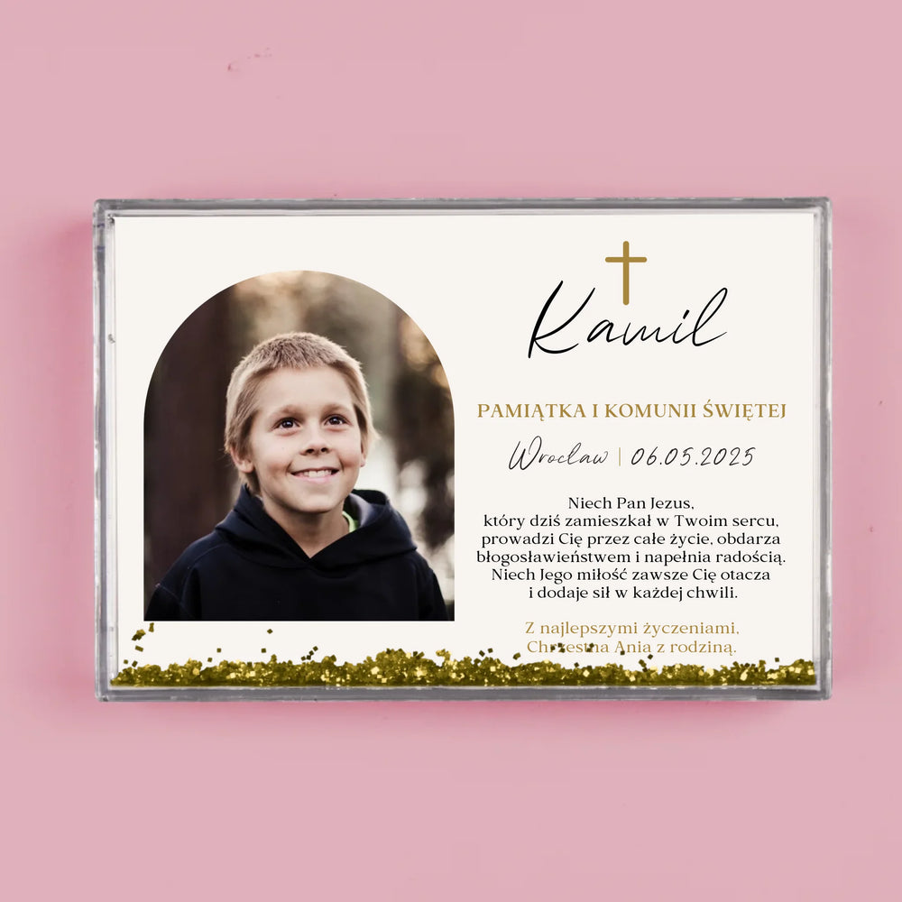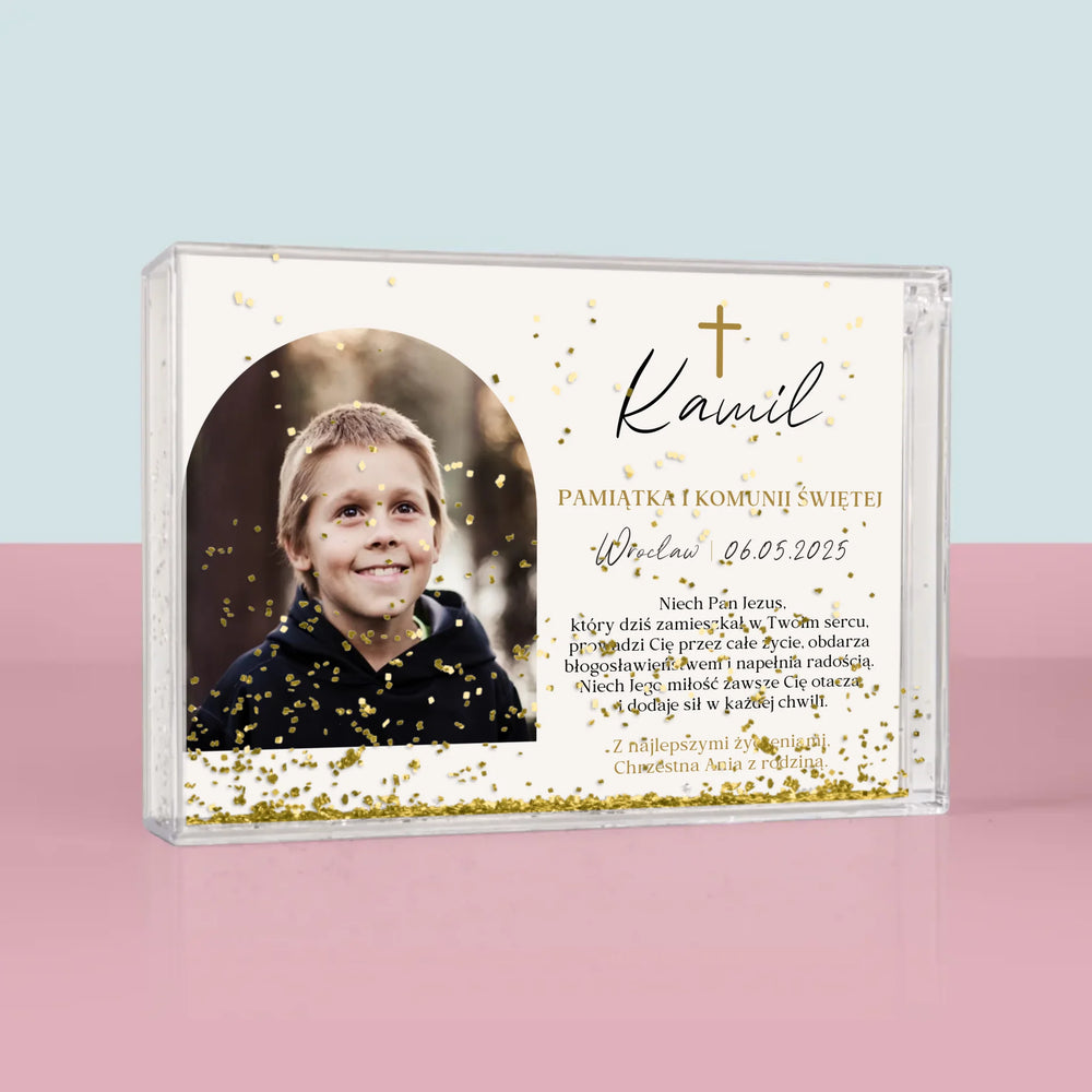 Zdjęcie i Podpis: Pamiątka Komunii Klasyczna - Personalizowana Ramka Wodna
