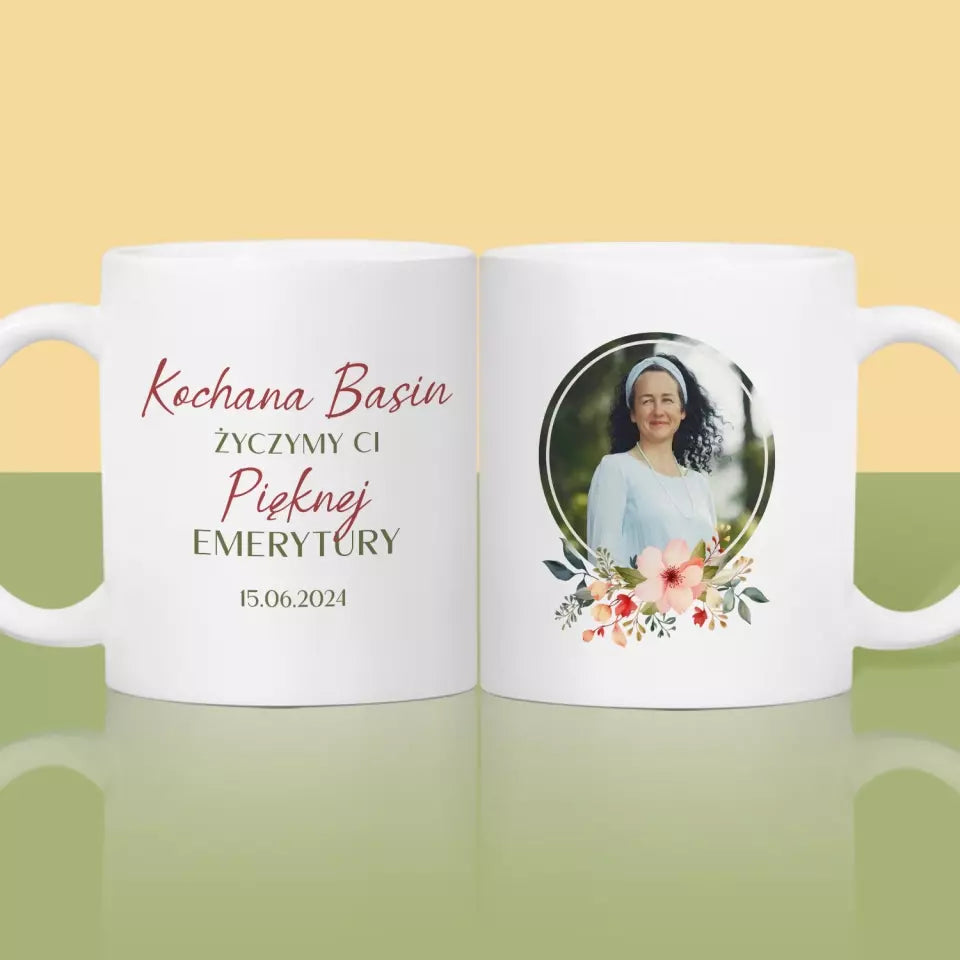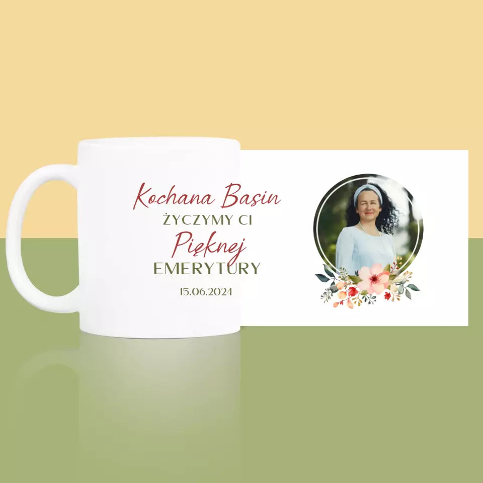 Zdjęcie i Podpis: Pięknej Emerytury - Kubek z nadrukiem