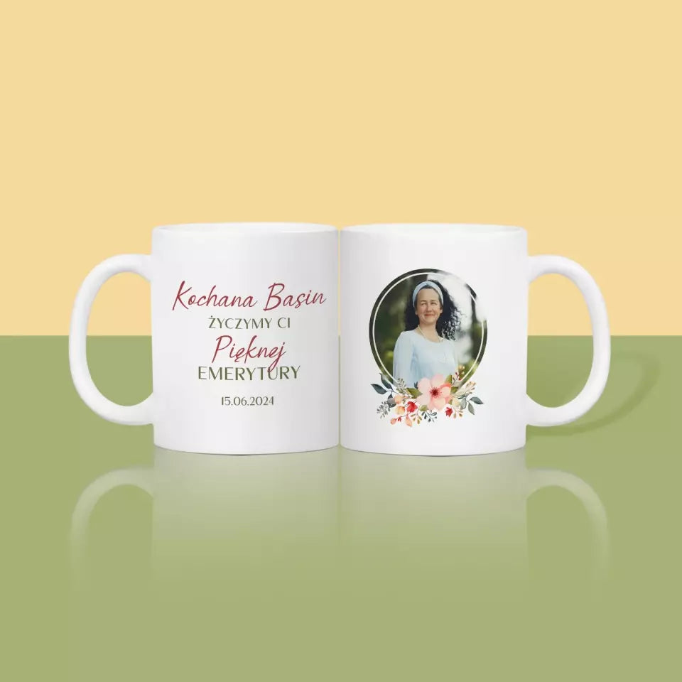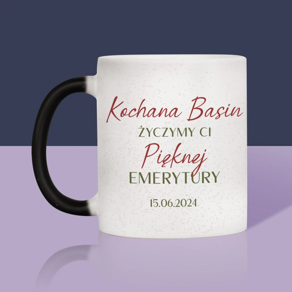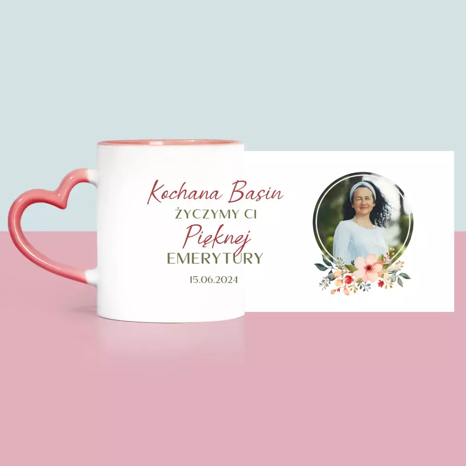 Zdjęcie i Podpis: Pięknej Emerytury - Kubek serce