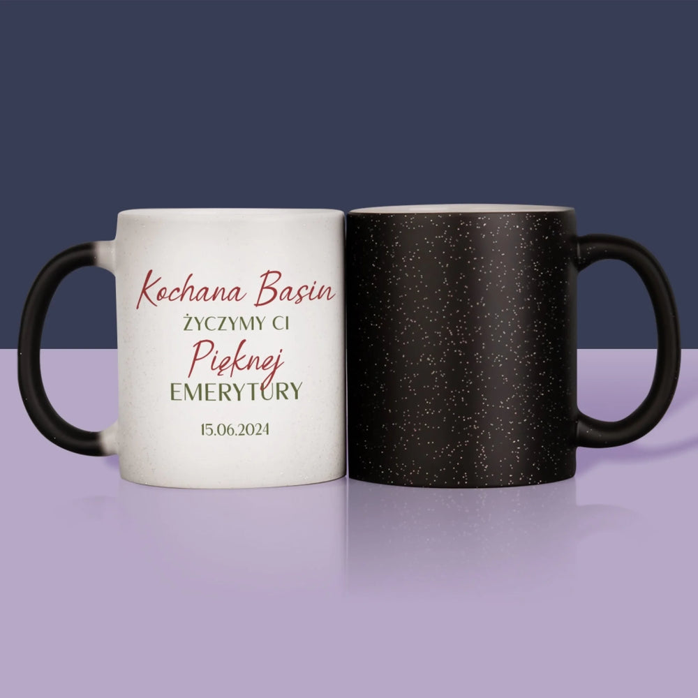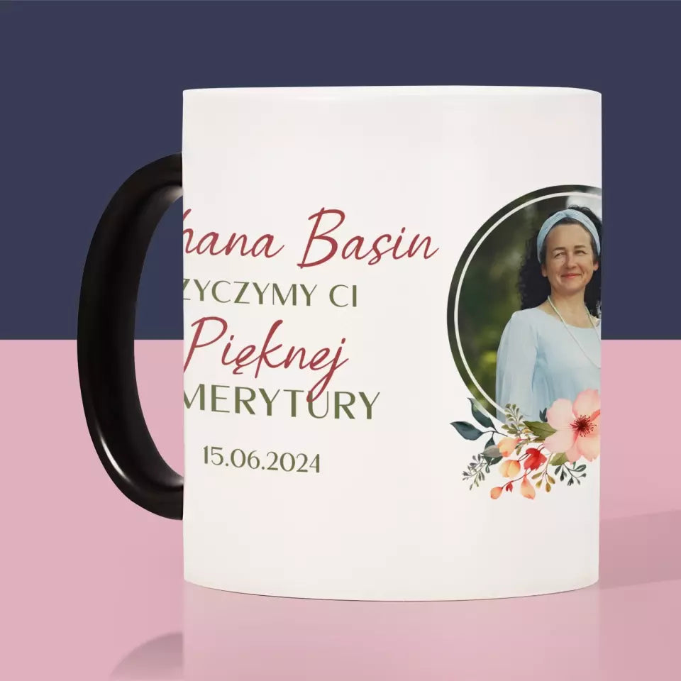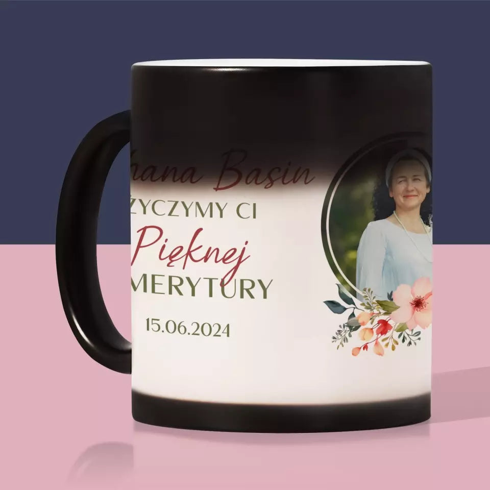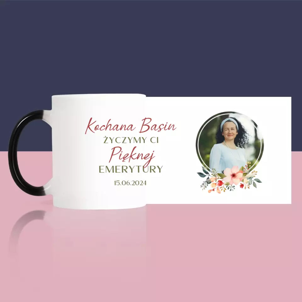 Zdjęcie i Podpis: Pięknej Emerytury - Kubek serce