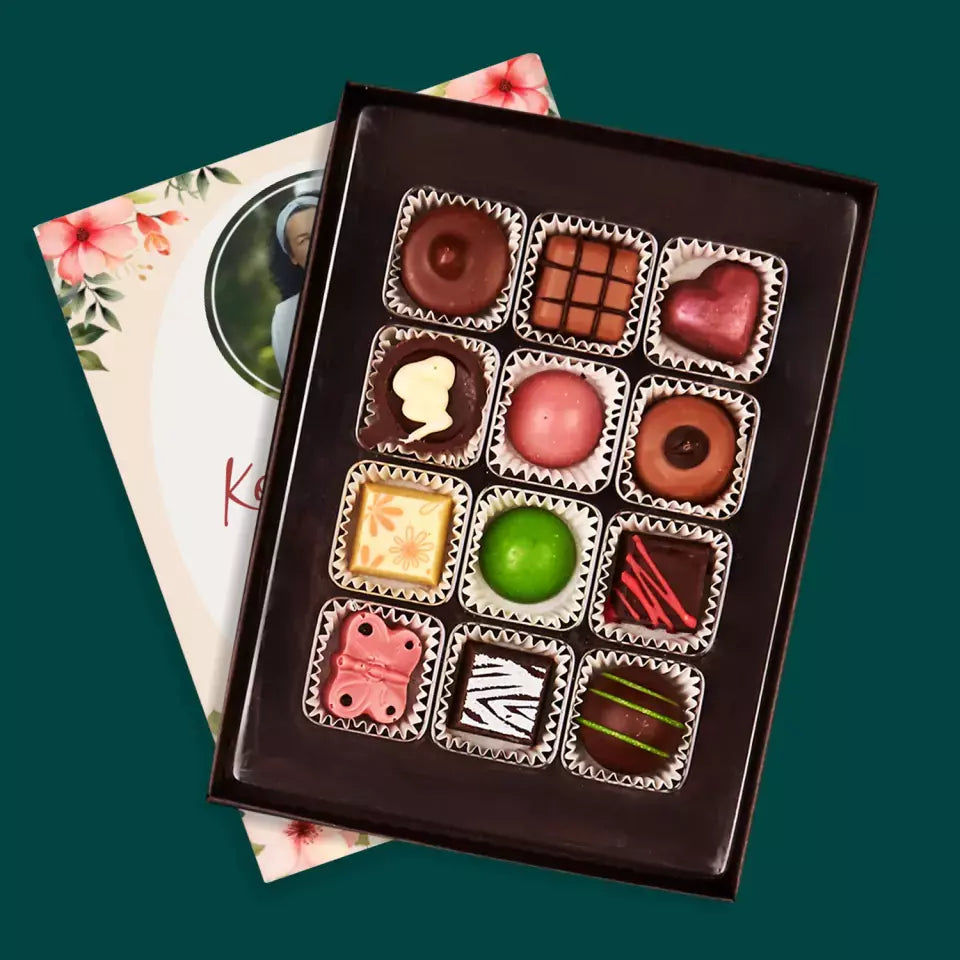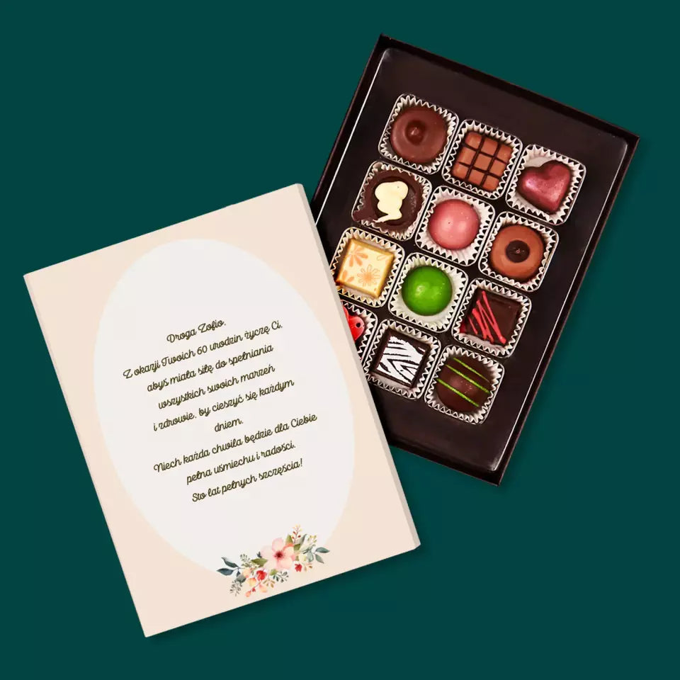 Pyszne praliny z belgijskiej czekolady w eleganckim pudełku z wybraną przez Ciebie personalizacją.