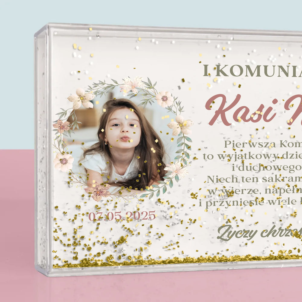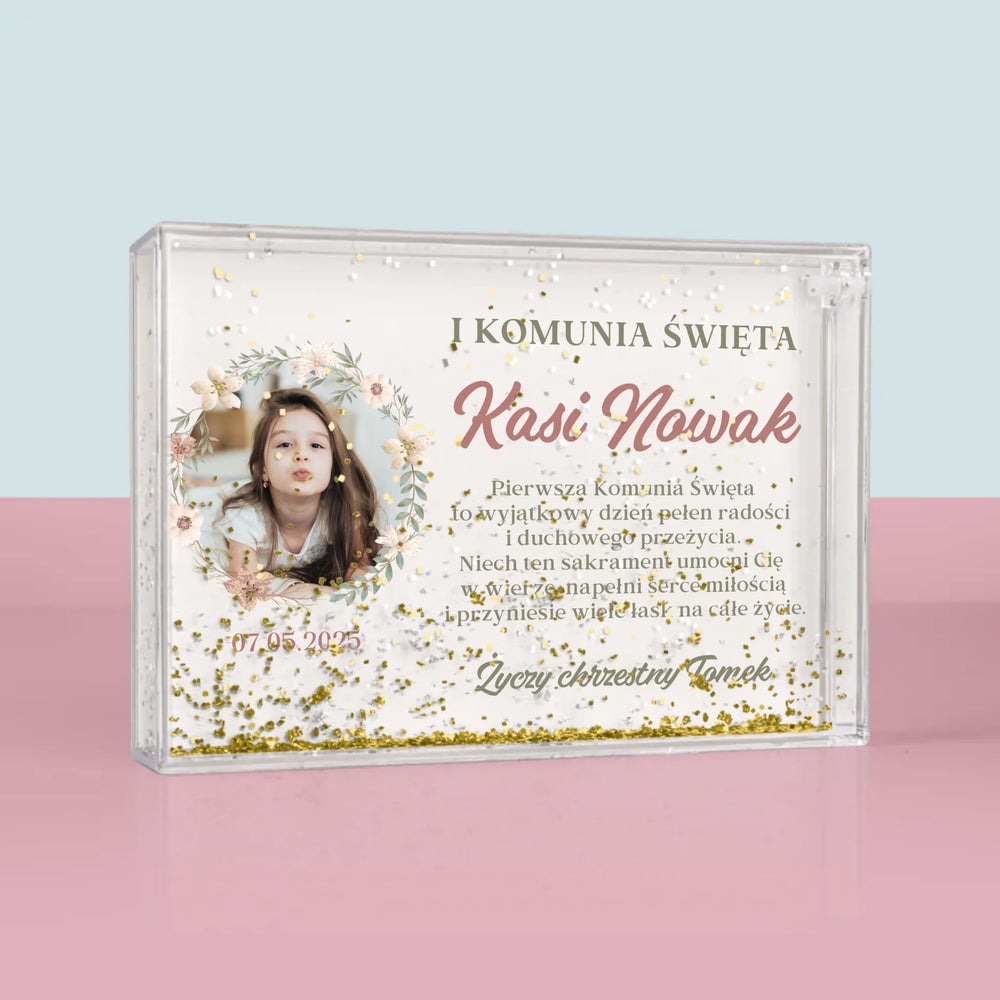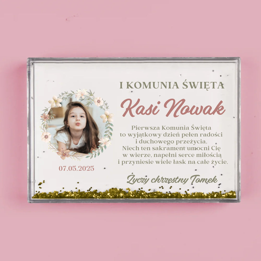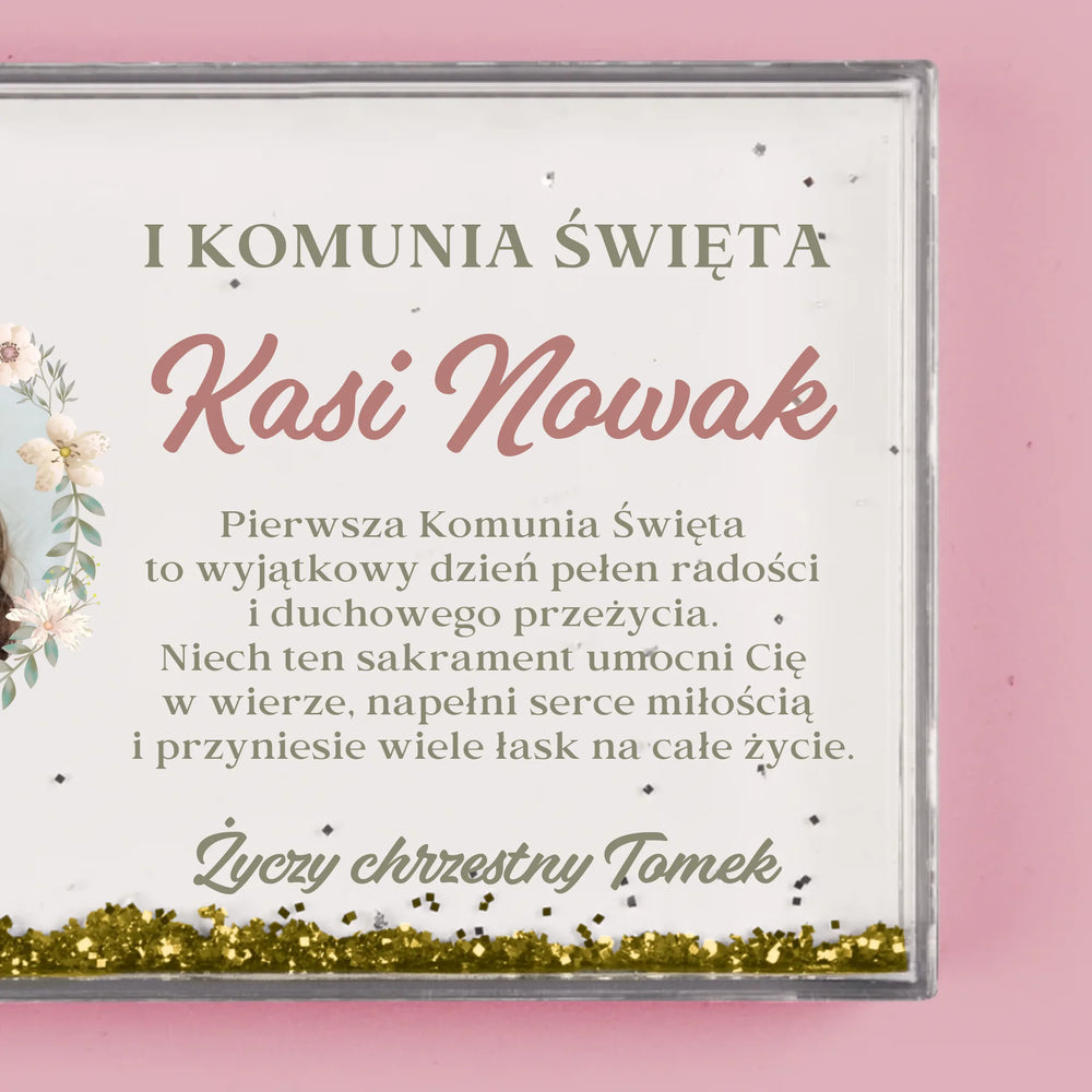 Zdjęcie i Podpis: Pierwsza Komunia Kwiaty - Personalizowana Ramka Wodna