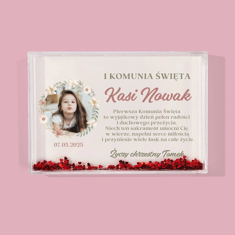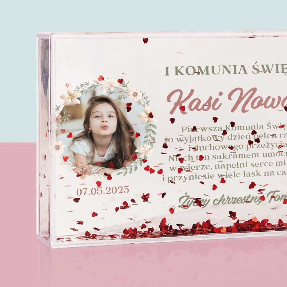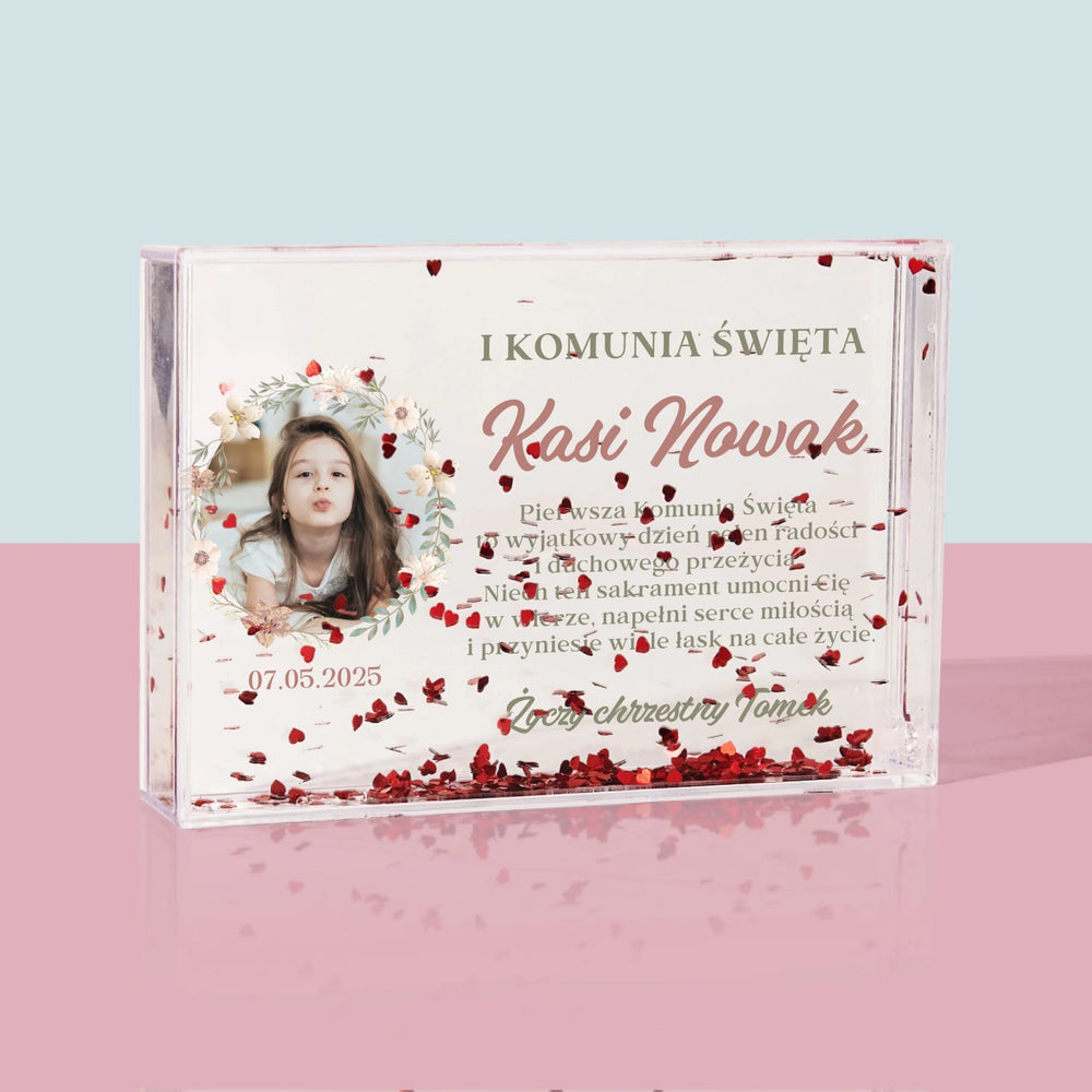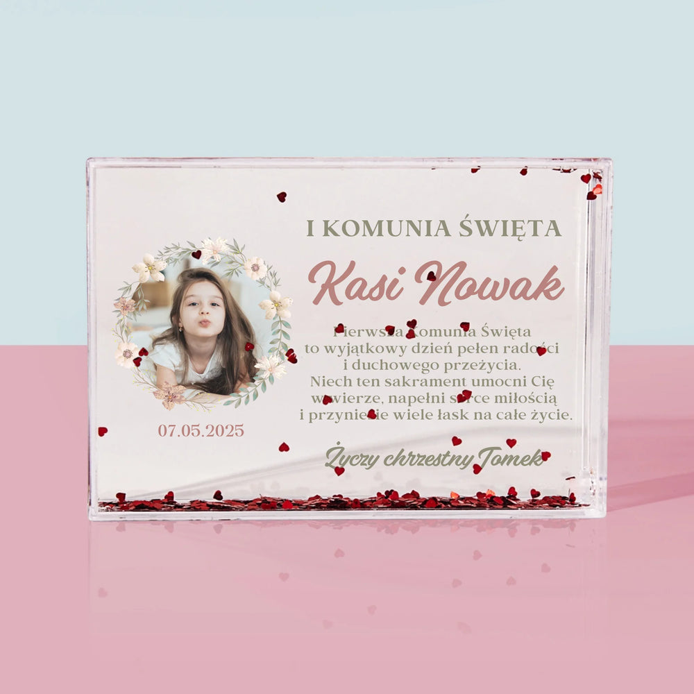 Zdjęcie i Podpis: Pierwsza Komunia Kwiaty - Personalizowana Ramka Wodna