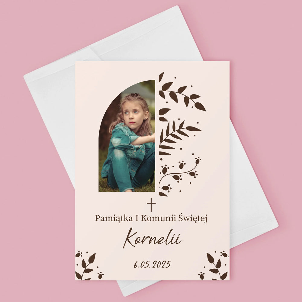 Zdjęcie i Podpis: Pierwsza Komunia Święta Listki - Kartka z życzeniami