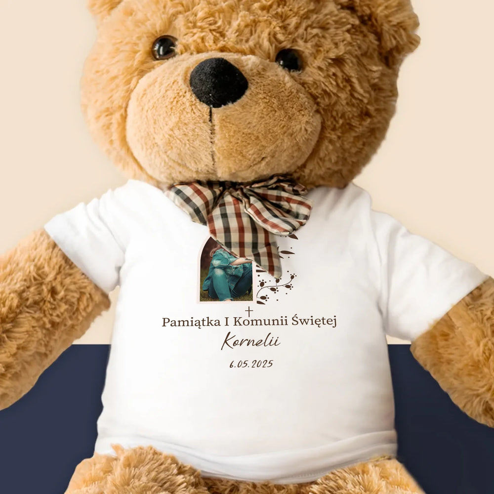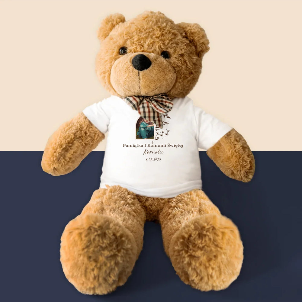 Zdjęcie i Podpis: Pierwsza Komunia Święta Listki - Pluszowy miś 90 cm