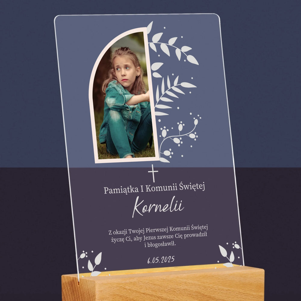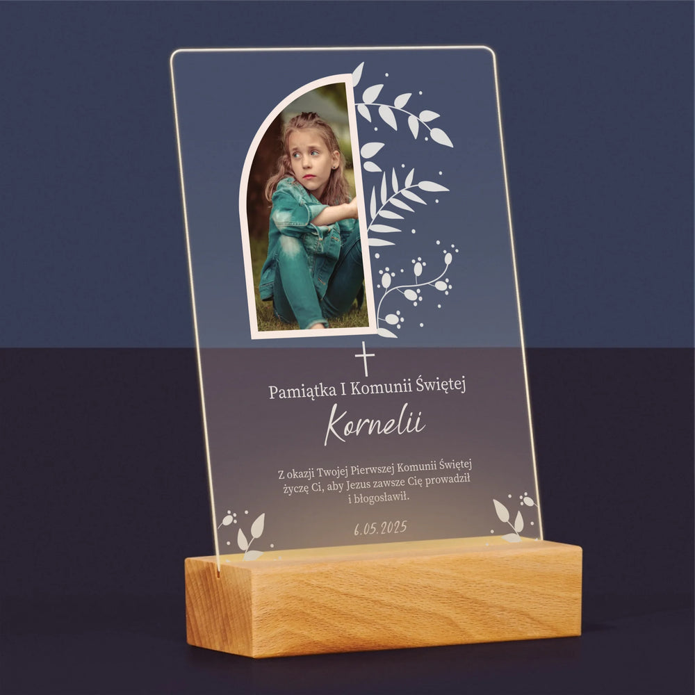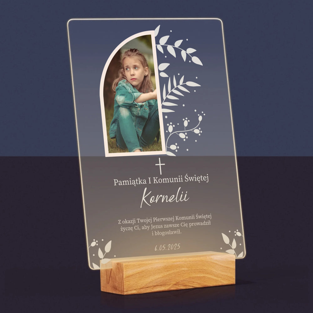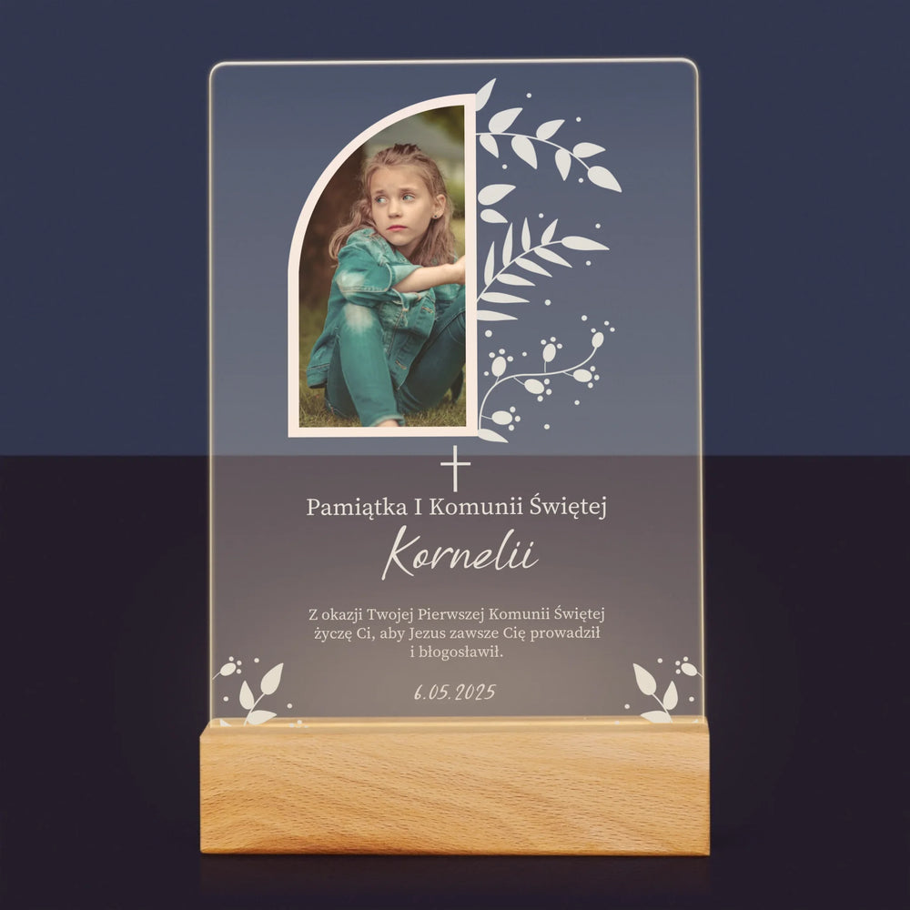 Zdjęcie i Podpis: Pierwsza Komunia Święta Listki - Wydruk na szkle akrylowym