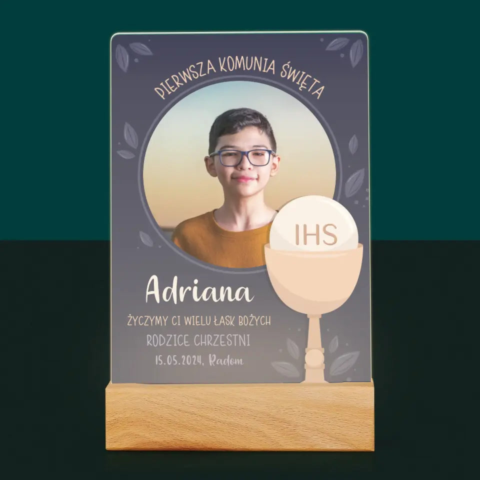 Zdjęcie i Podpis: Pierwsza Komunia Święta - Wydruk na szkle akrylowym