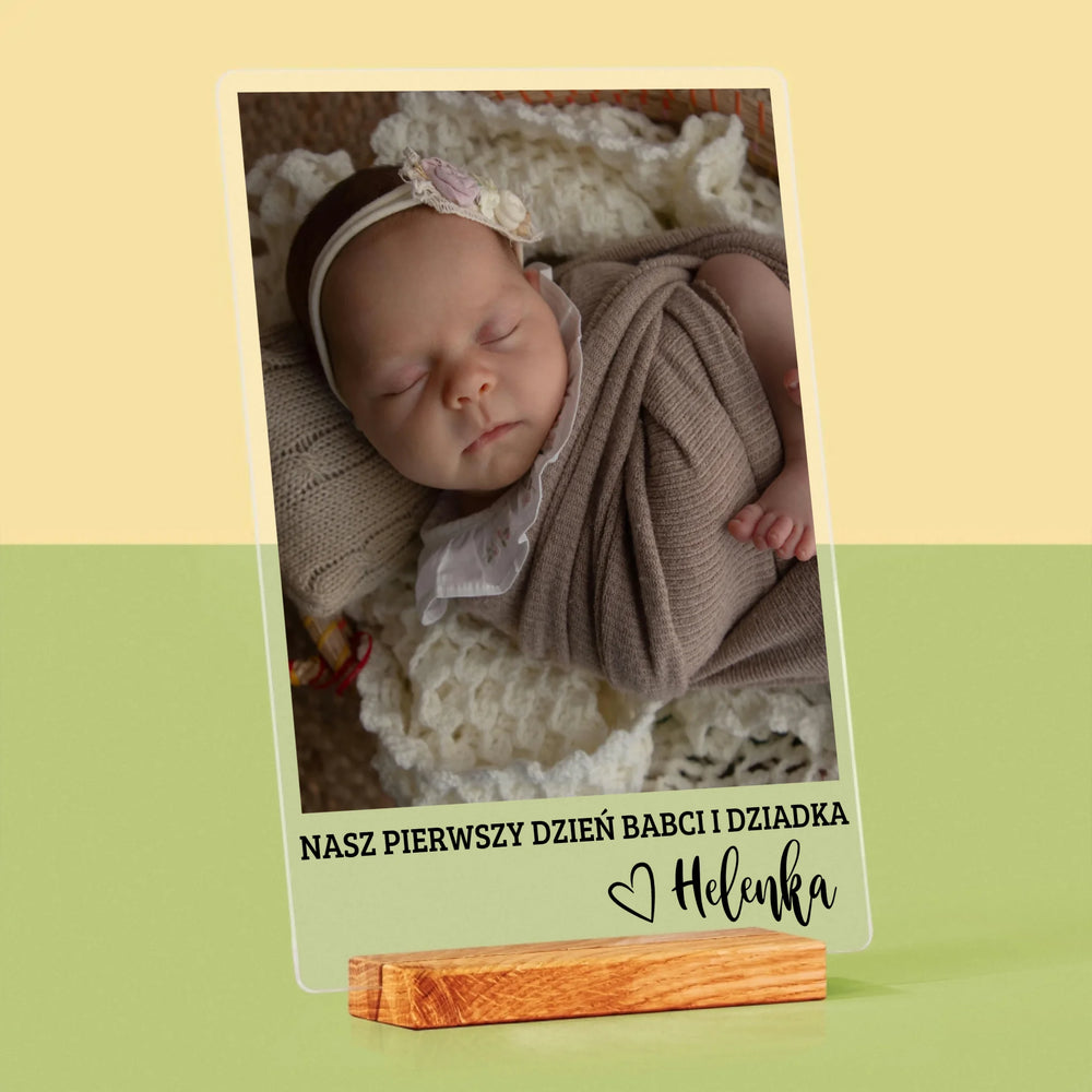 Zdjęcie i Podpis: Pierwszy Dzień Babci i Dziadka - Wydruk na szkle akrylowym