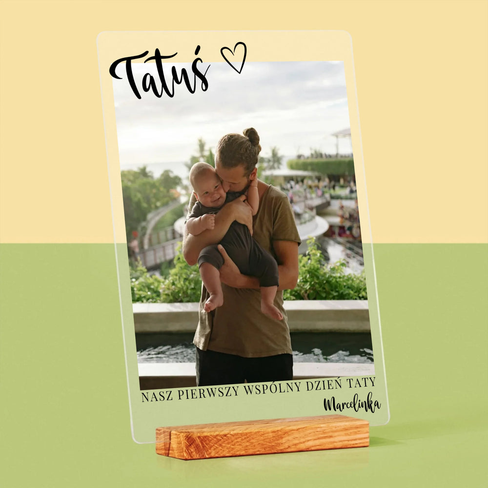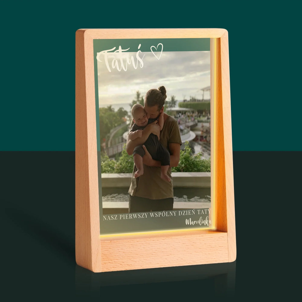 Zdjęcie I Podpis: Pierwszy Dzień Tatusia - Wydruk na szkle akrylowym w ramce LED