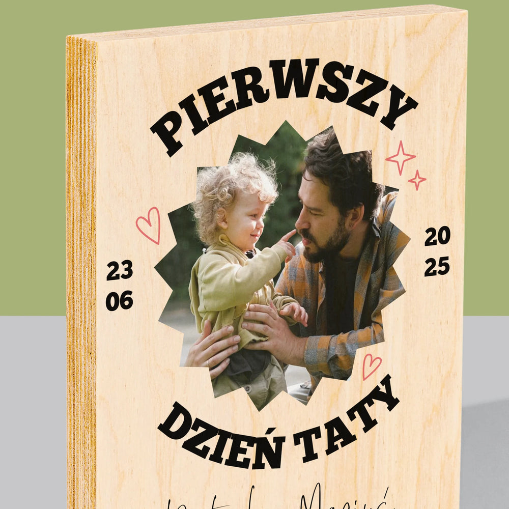 Zdjęcie I Podpis: Pierwszy Dzień Taty Razem - Wydruk na drewnie - Pion