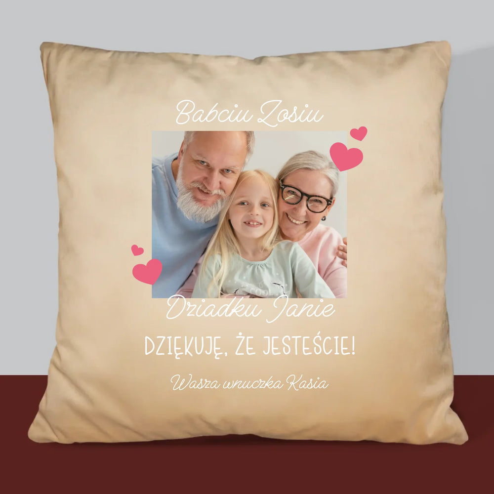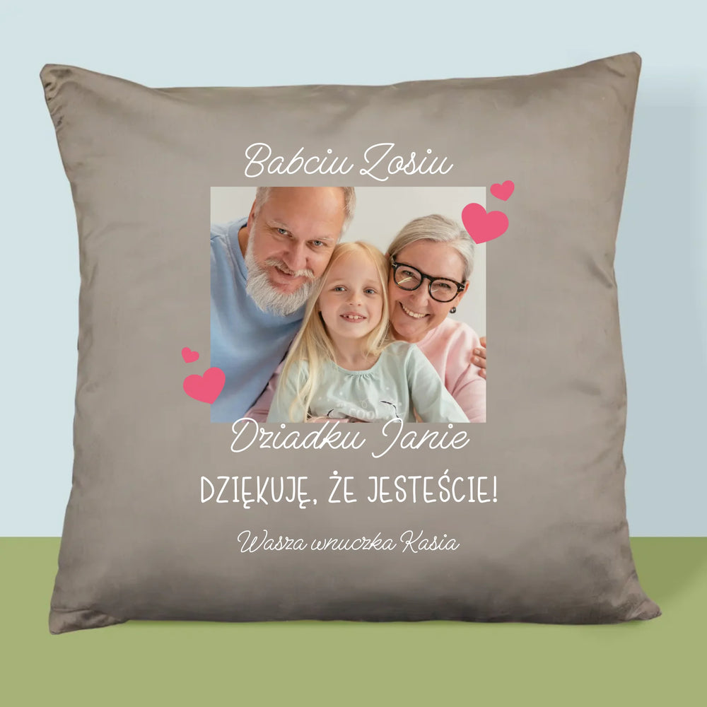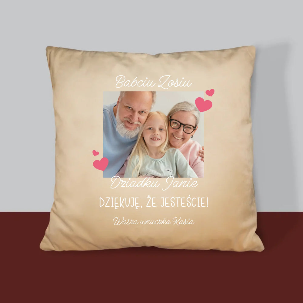 Zdjęcie i Podpis: Podziękowania Dla Dziadków - Poduszka z Nadrukiem