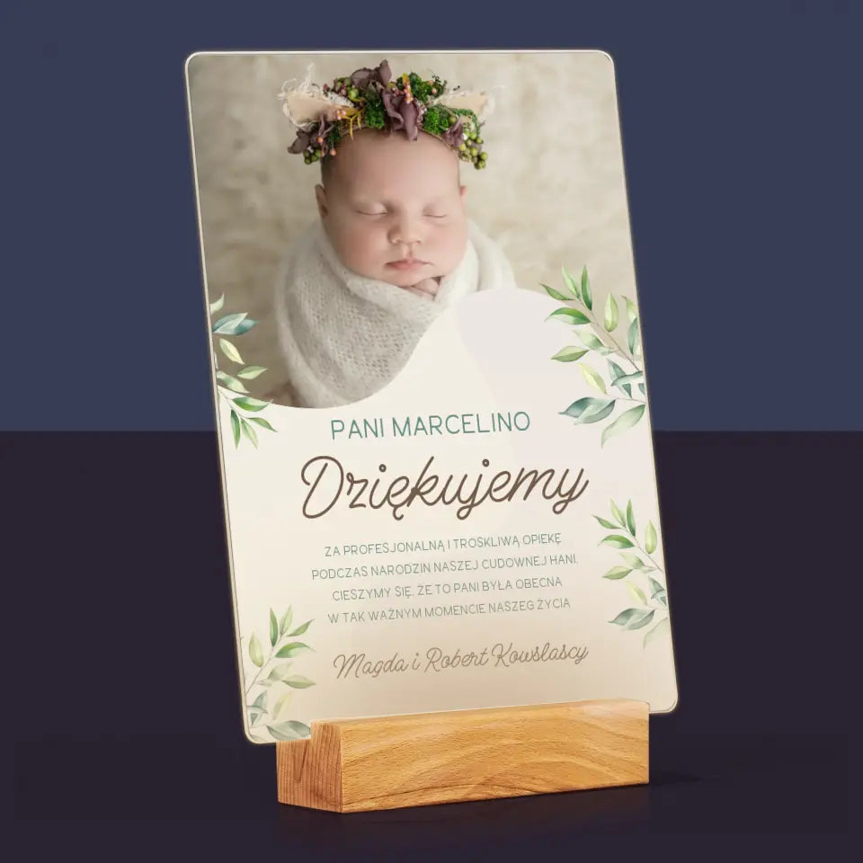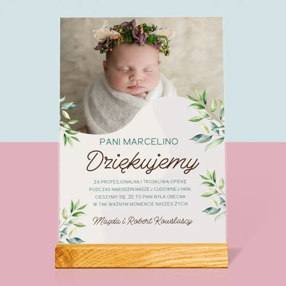Zdjęcie i Podpis: Podziękowania Dla Położnej - Wydruk na szkle akrylowym
