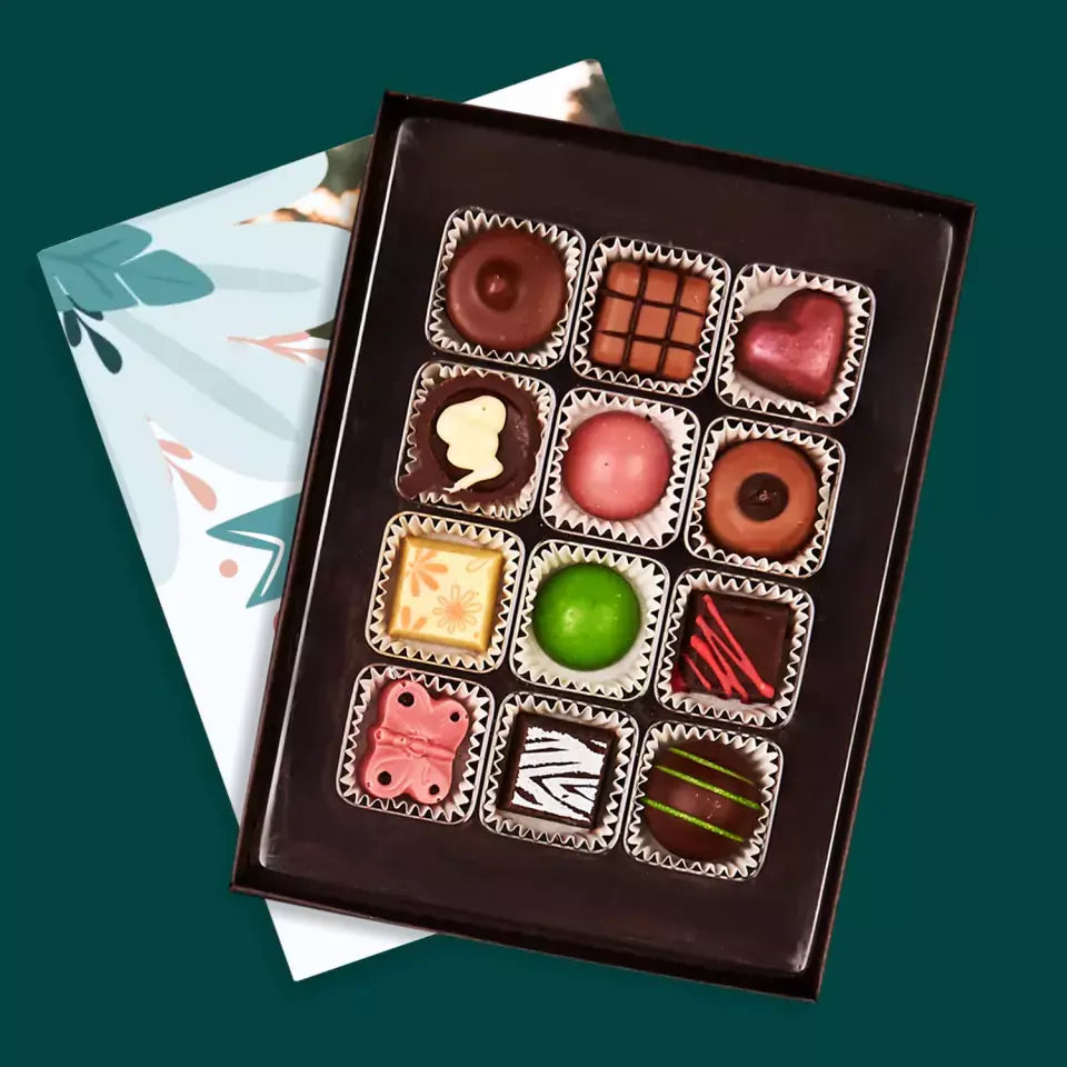 Pyszne praliny z belgijskiej czekolady w eleganckim pudełku z wybraną przez Ciebie personalizacją.