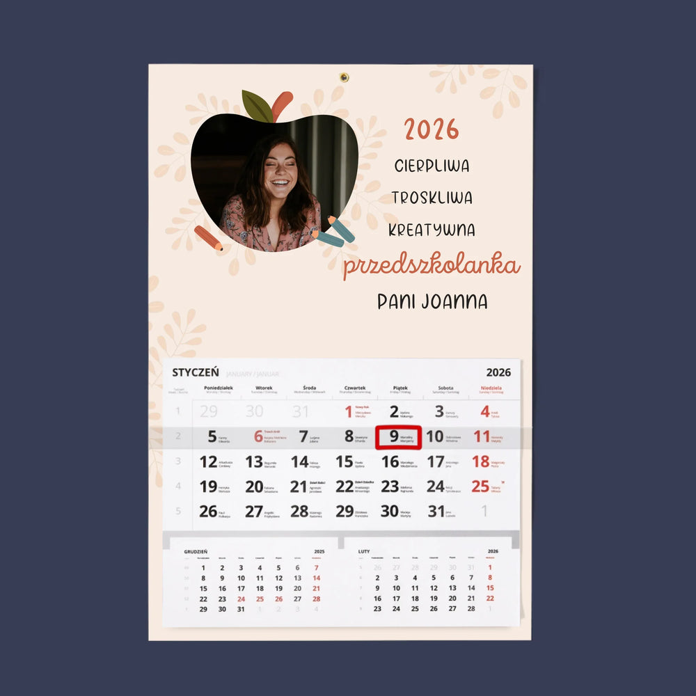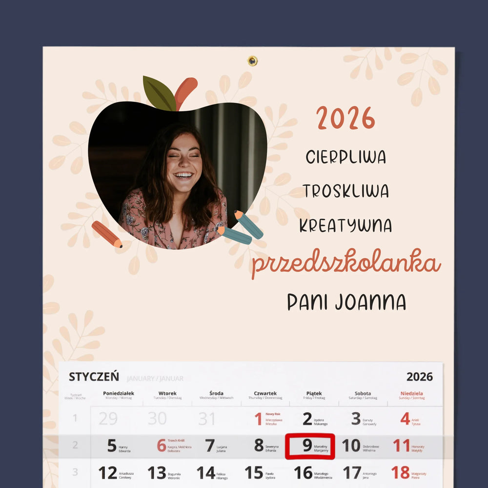 Zdjęcie i Podpis: Przedszkolanka - Personalizowany Kalendarz Jednodzielny