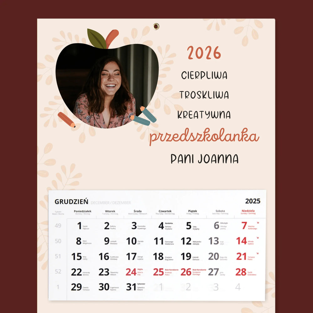 Zdjęcie i Podpis: Przedszkolanka - Kalendarz trójdzielny
