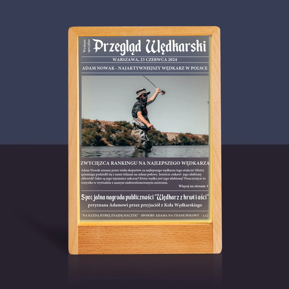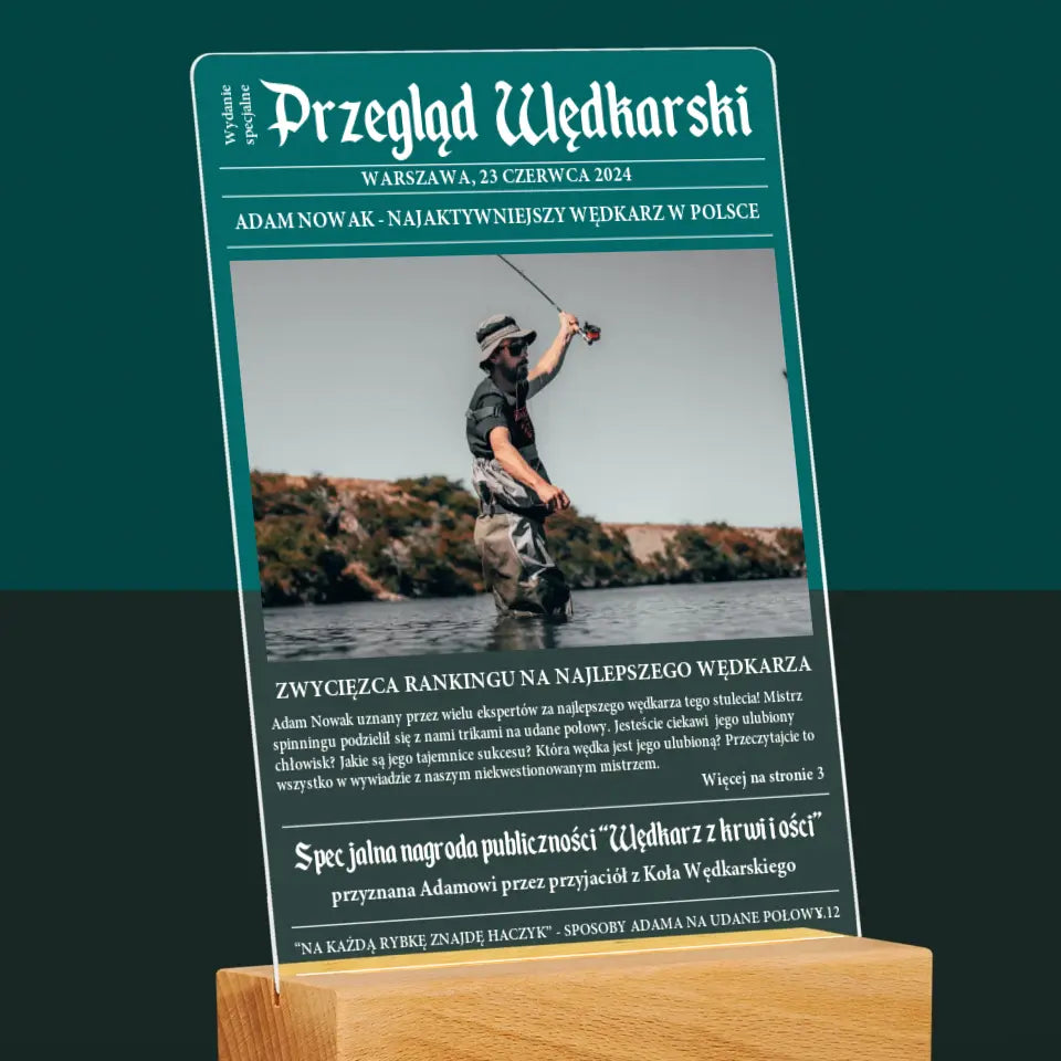 Zdjęcie i Podpis: Przegląd Wędkarski - Wydruk na szkle akrylowym w ramce LED