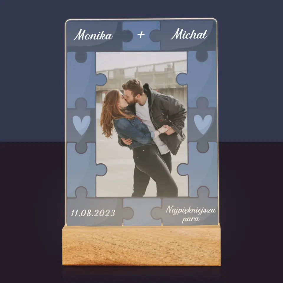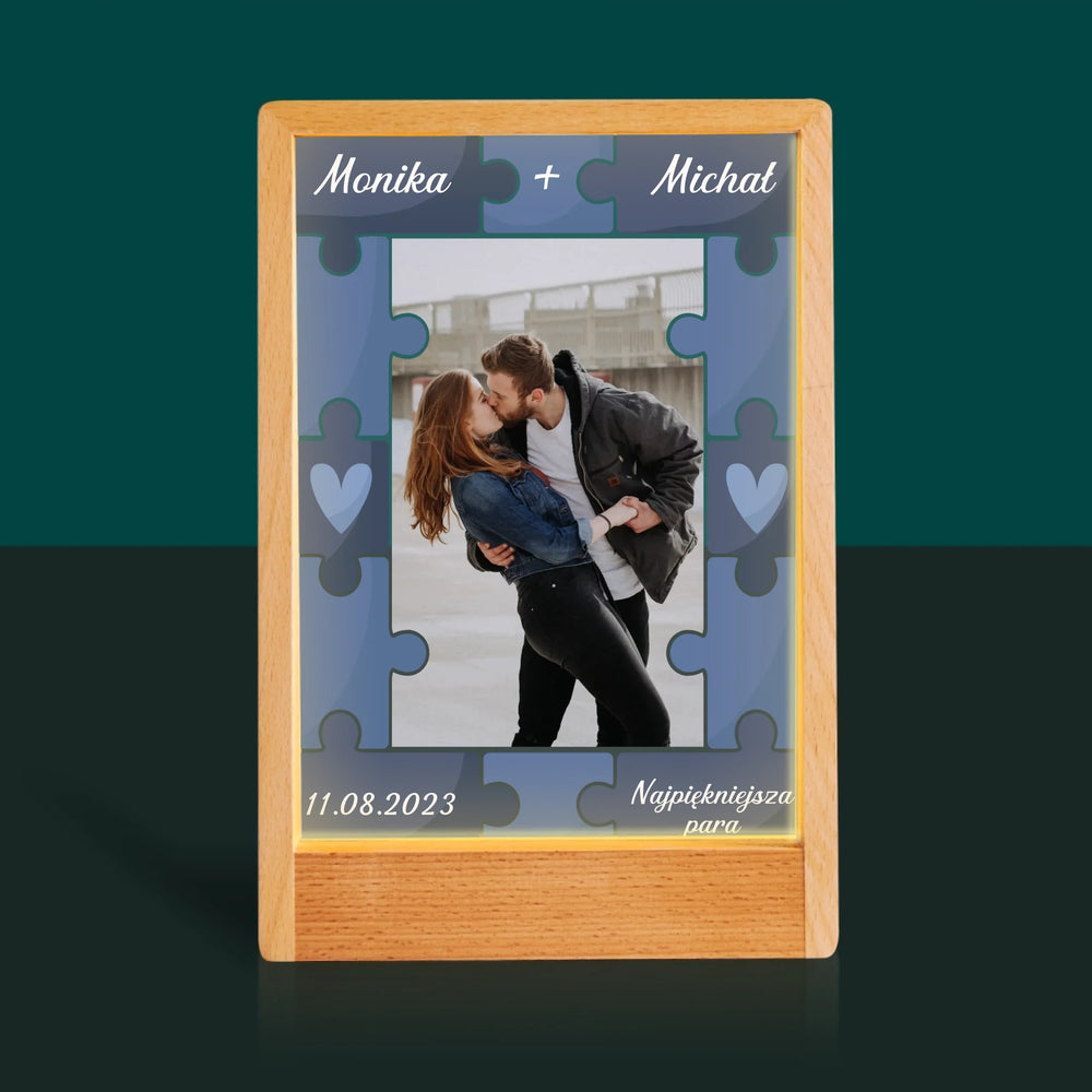 Zdjęcie i Podpis: Puzzle + Zdjęcie - Wydruk na szkle akrylowym w ramce LED