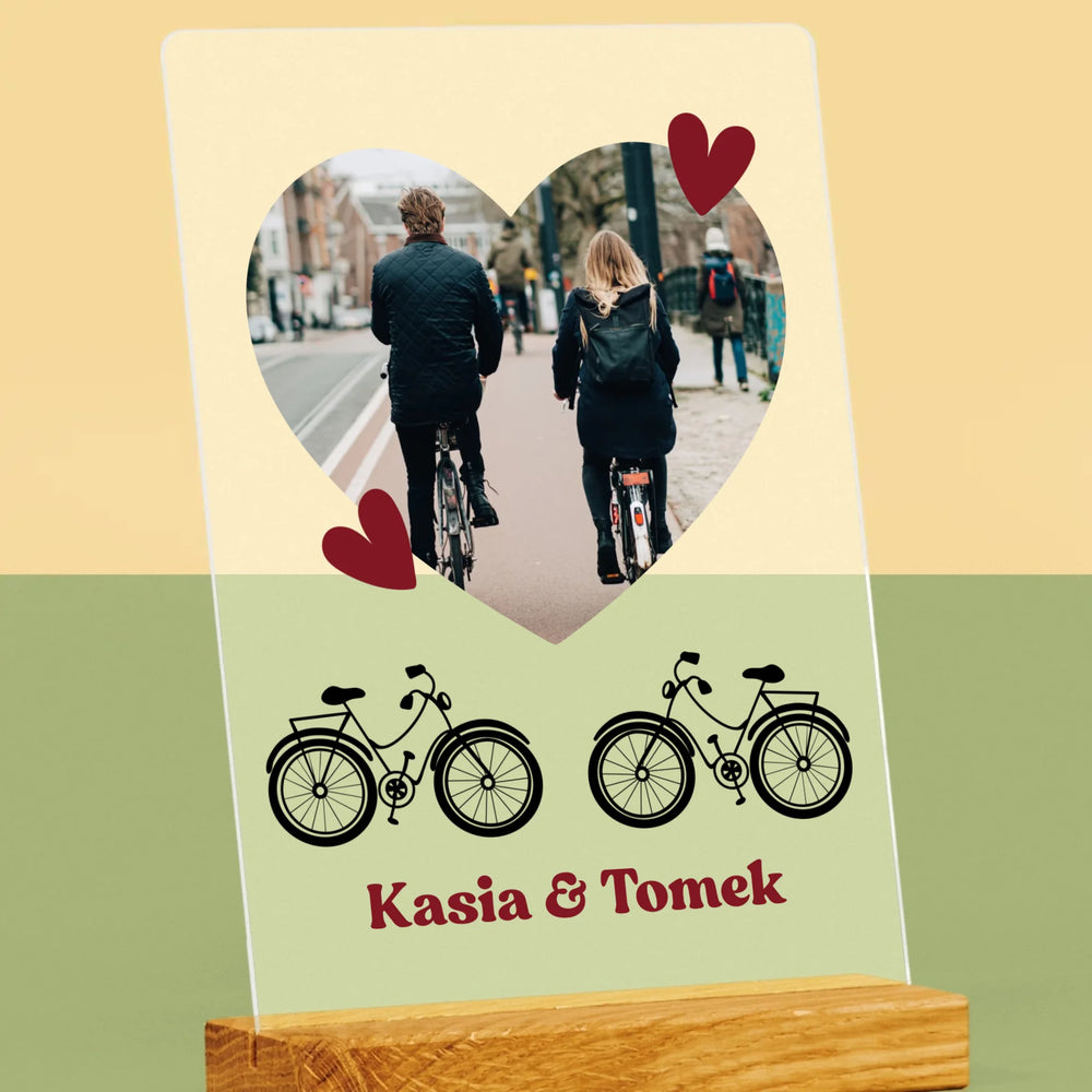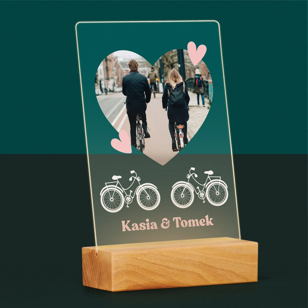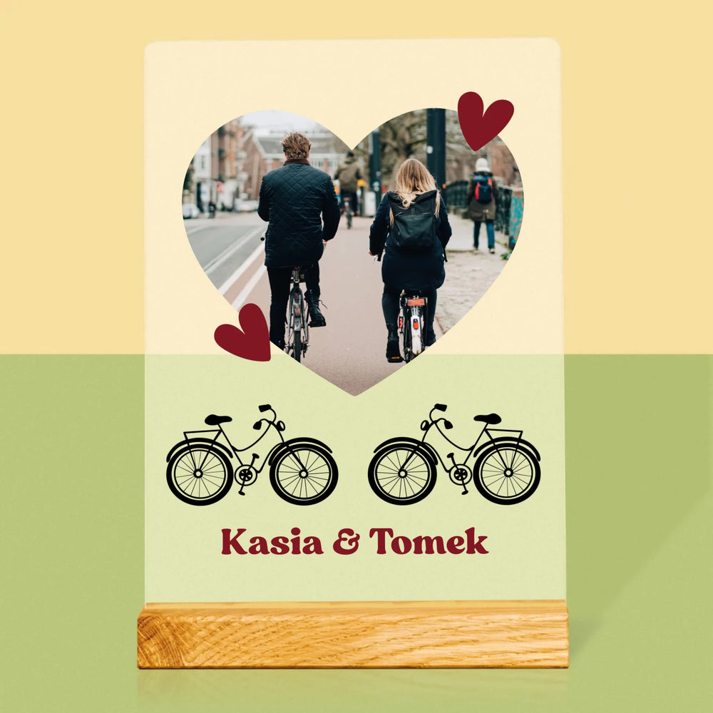 Zdjęcie I Podpis: Rowerowa Para - Wydruk na szkle akrylowym LED