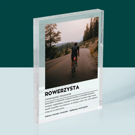 Zdjęcie I Podpis: Rowerzysta Definicja - Wydruk na drewnie - Pion