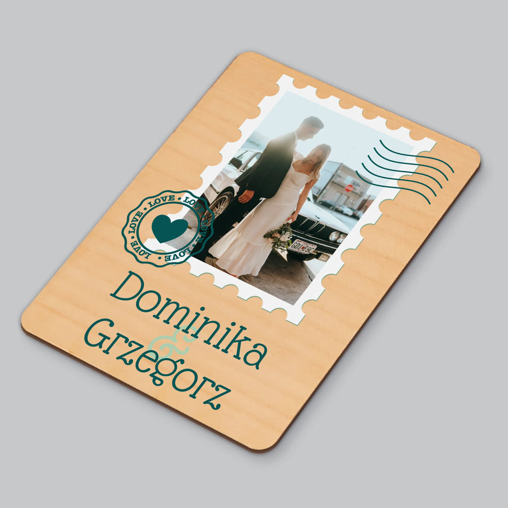 Zdjęcie i Podpis: Ślubna Pocztówka - Magnes drewniany