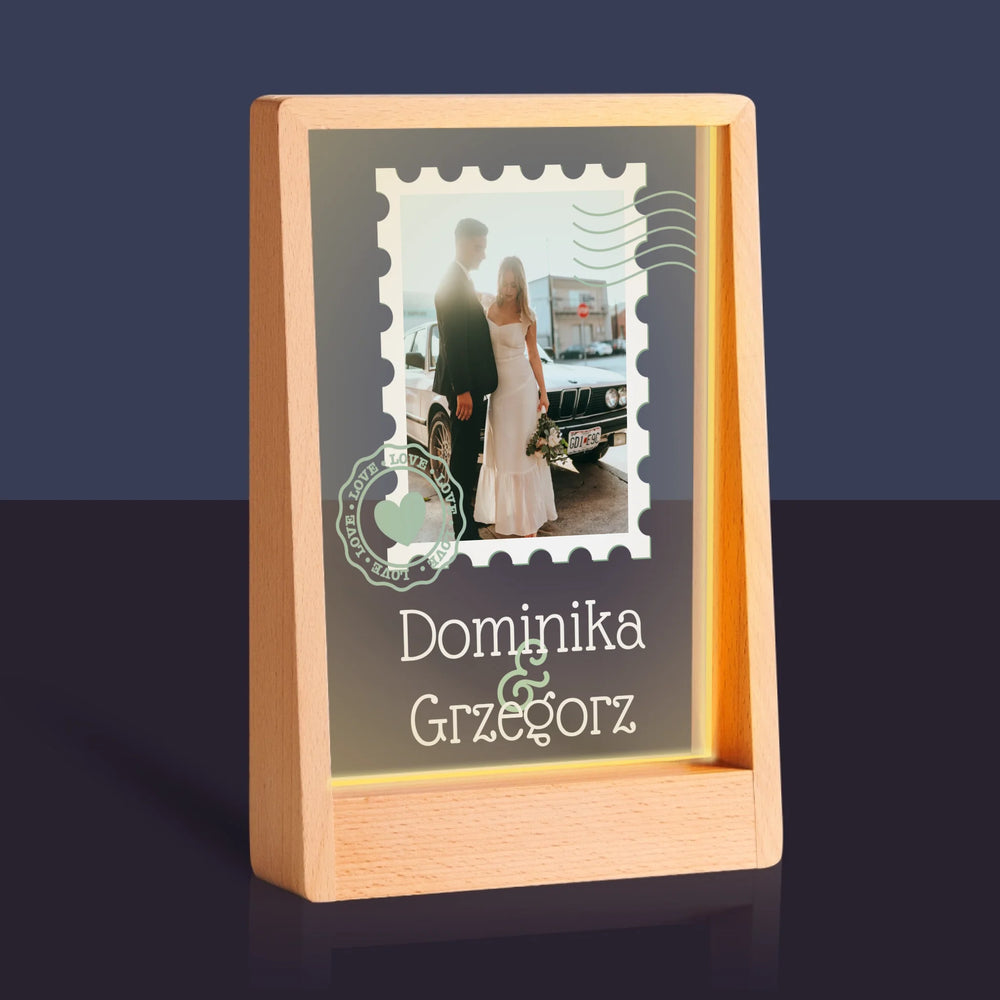 Zdjęcie i Podpis: Ślubna Pocztówka - Wydruk na szkle akrylowym w ramce LED