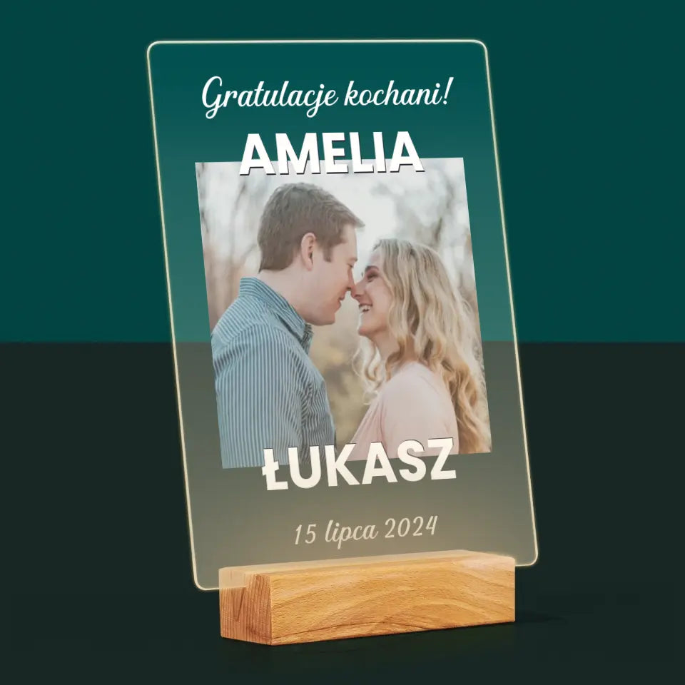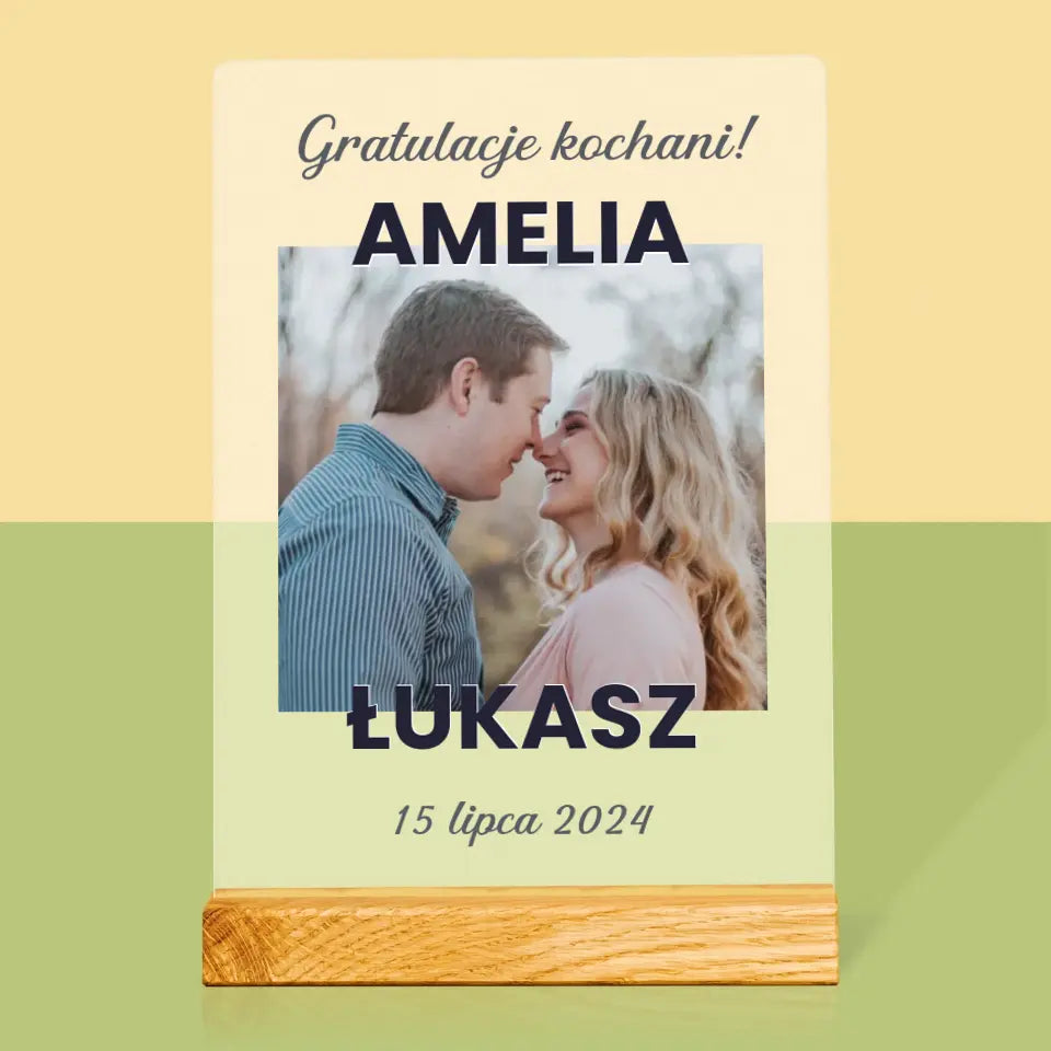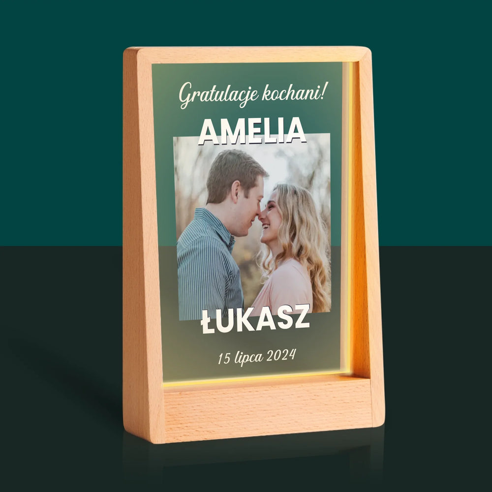 Zdjęcie i Podpis: Ślubne Gratulacje - Wydruk na szkle akrylowym w ramce LED