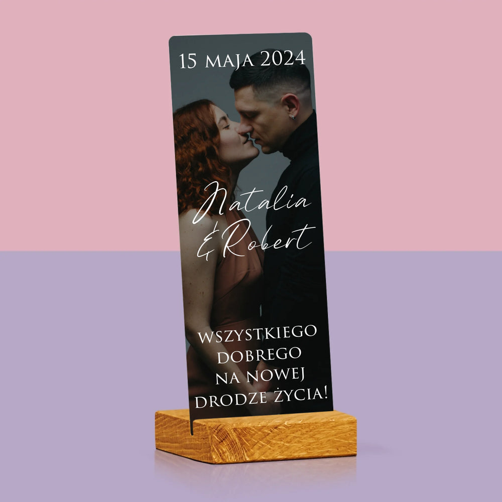 Zdjęcie i Podpis: Ślubne Zdjęcie Życzenia - Zdjęcie na szkle akrylowym fotobudka