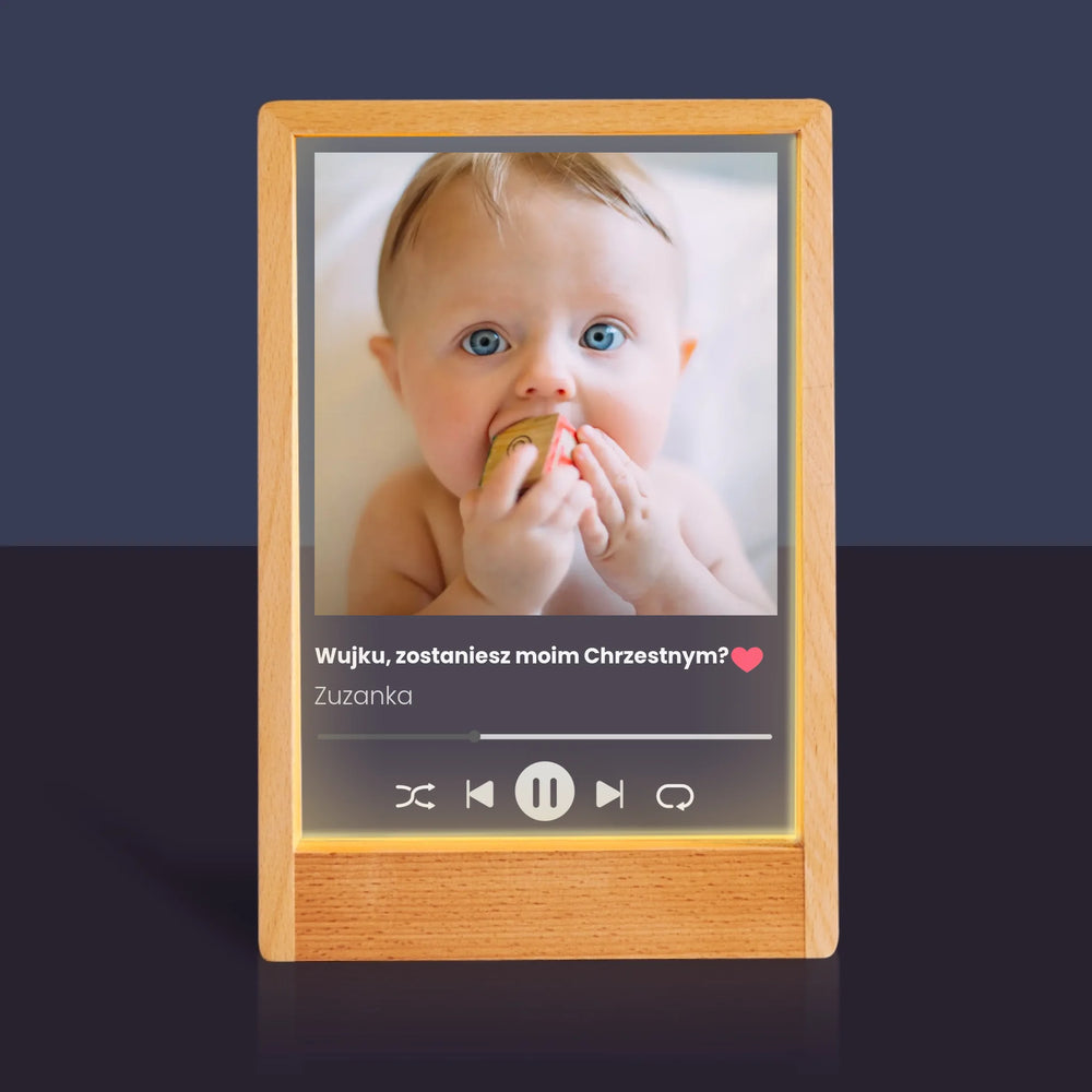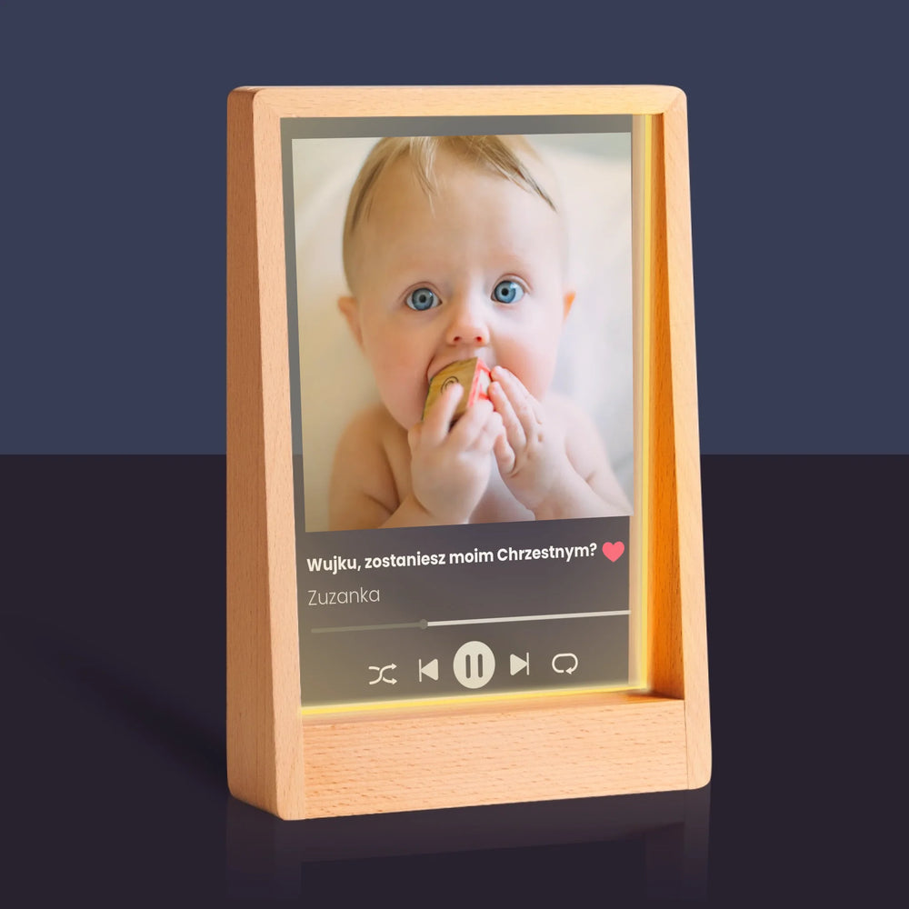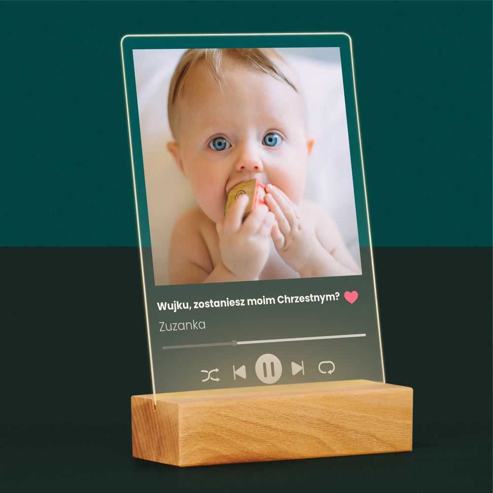 Zdjęcie I Podpis: Spotify Dla Chrzestnego - Wydruk na szkle akrylowym w ramce LED