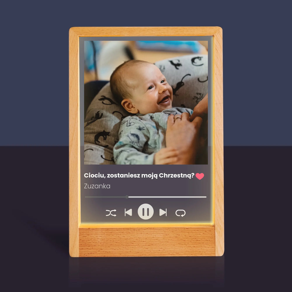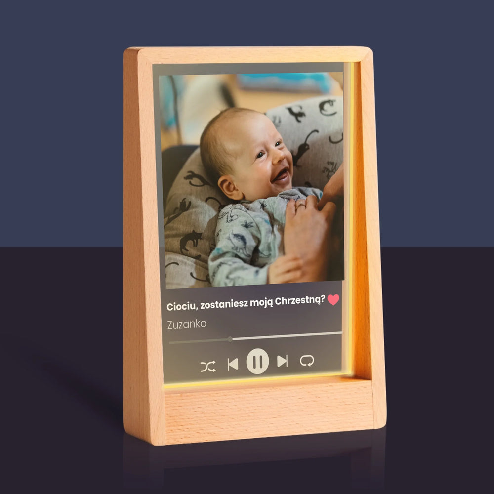 Zdjęcie I Podpis: Spotify Dla Chrzestnej - Wydruk na szkle akrylowym w ramce LED